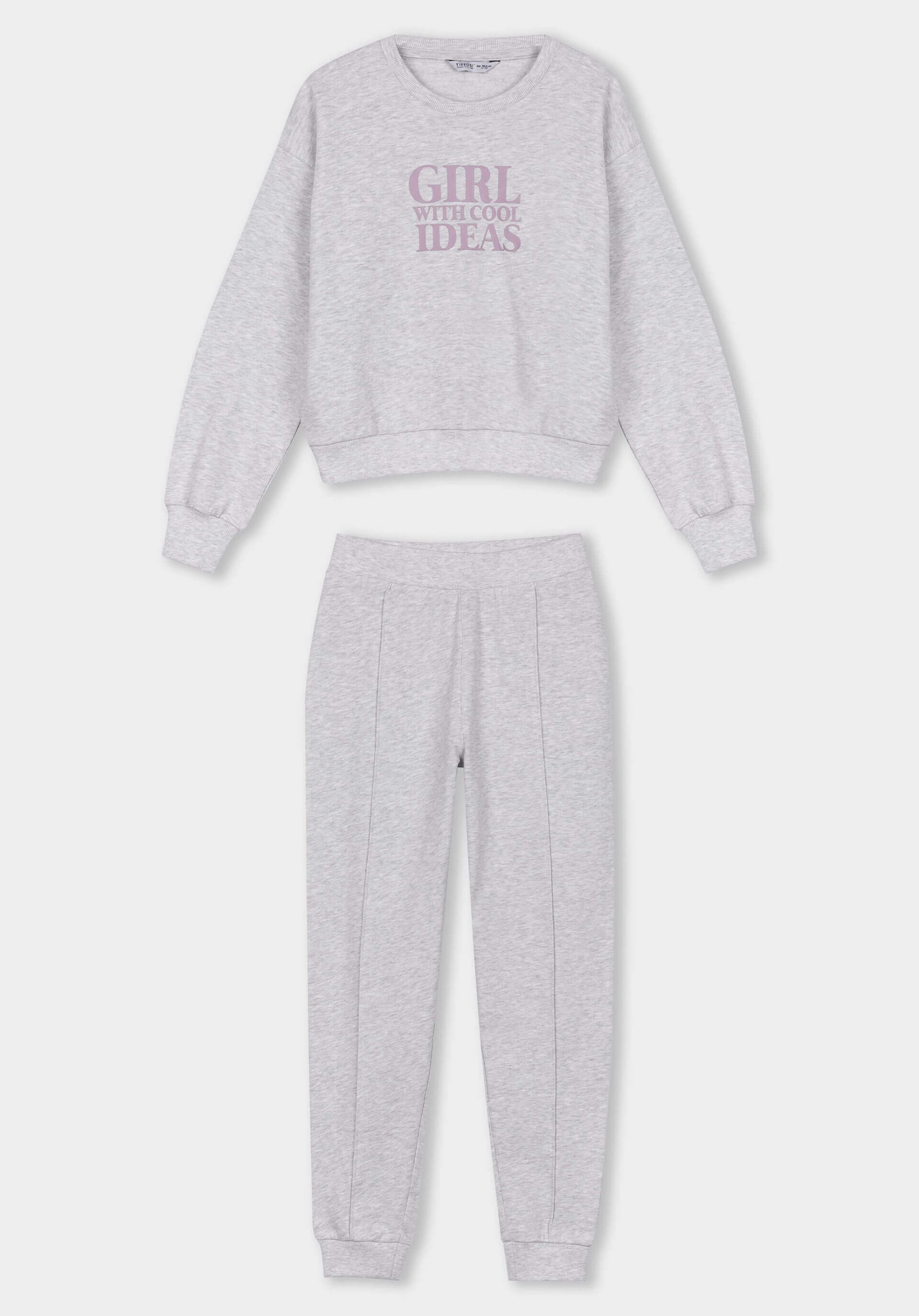 Pense em silhuetas dos anos 80, painéis pesados, denim super skinny e estampas de bandana. Pois bem essa era voltou aos dias de hoje. Conhecida por seu estilo urbano e design incomum, a Tiffosi incorpora detalhes nativos portugueses. Assim é este fato de treino cinza c/ estampa da Tiffosi. Tem bolsos, elástico no cós, decote redondo e manga comprida. A imagem está no tamanho 9-10 anos /140 cm.