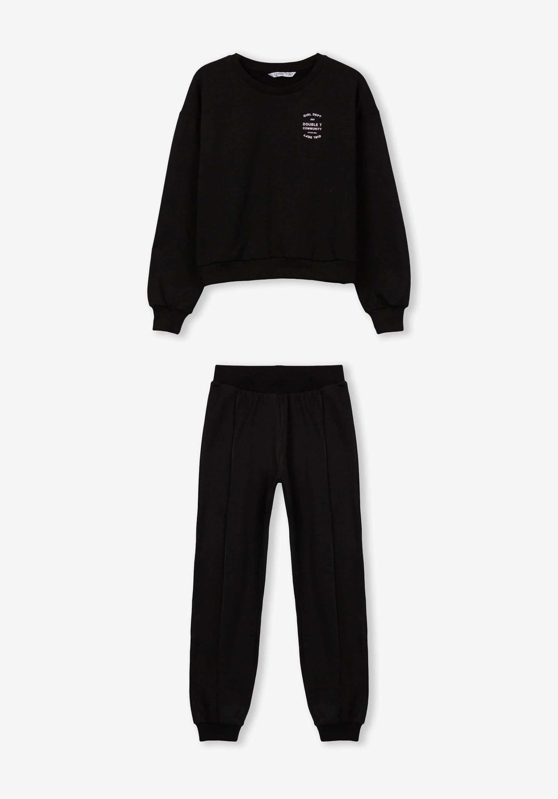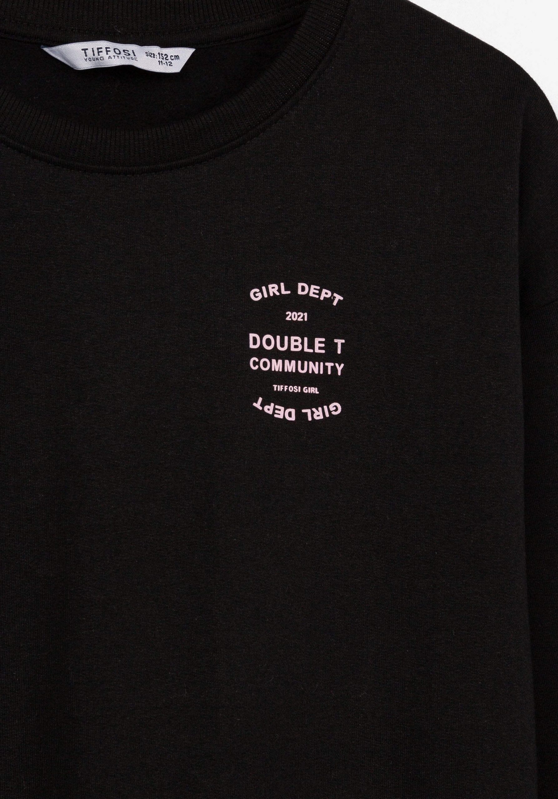 Pense em silhuetas dos anos 80, painéis pesados, denim super skinny e estampas de bandana. Pois bem essa era voltou aos dias de hoje. Conhecida por seu estilo urbano e design incomum, a Tiffosi incorpora detalhes nativos portugueses. Assim é este fato de treino preto da Tiffosi. Tem camisola e calça. Para parte de baixo combina na perfeição com sapatilhas mas a dar com o tom. A imagem está no tamanho 9-10 anos /140 cm.