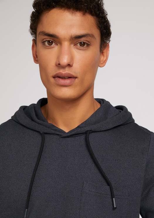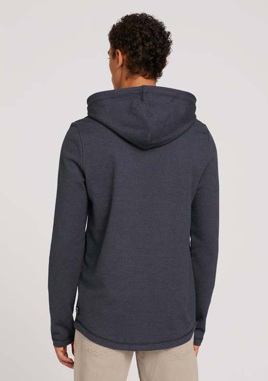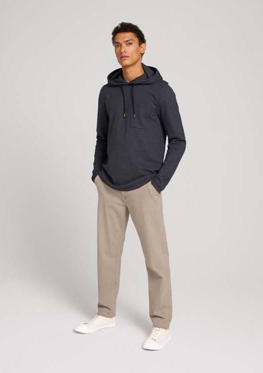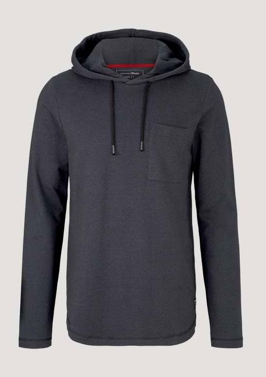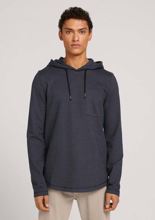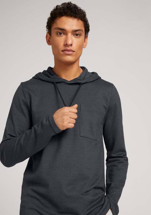 Conhecida por seu estilo urbano e design incomum, a Tom Tailor incorpora detalhes inovadores. Combinados com silhuetas inspiradas em streetwear e uma estética jovial. Assim é este hoodie azul c/ bolso da Tom Tailor. Apresenta mangas compridas e capuz. Para parte de baixo combina na perfeição com jeans, mas dentro do mesmo estilo. O modelo está a vestir o tamanho S.
