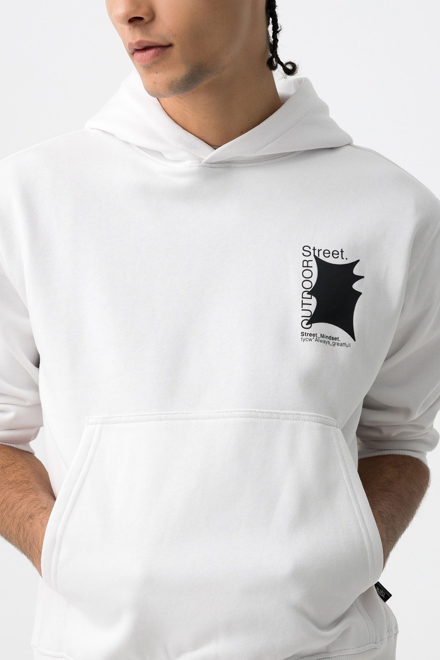 Conhecida por seu estilo urbano e design incomum, a Tiffosi incorpora detalhes inovadores. Combinados com silhuetas inspiradas em streetwear e uma estética jovial. Assim é este hoodie branco c/ estampa na costa da Tiffosi. Tem decote redondo com capuz e manga comprida. Para parte de baixo combina na perfeição com jeans, mas dentro do mesmo estilo. A imagem está no tamanho M / 164 cm.