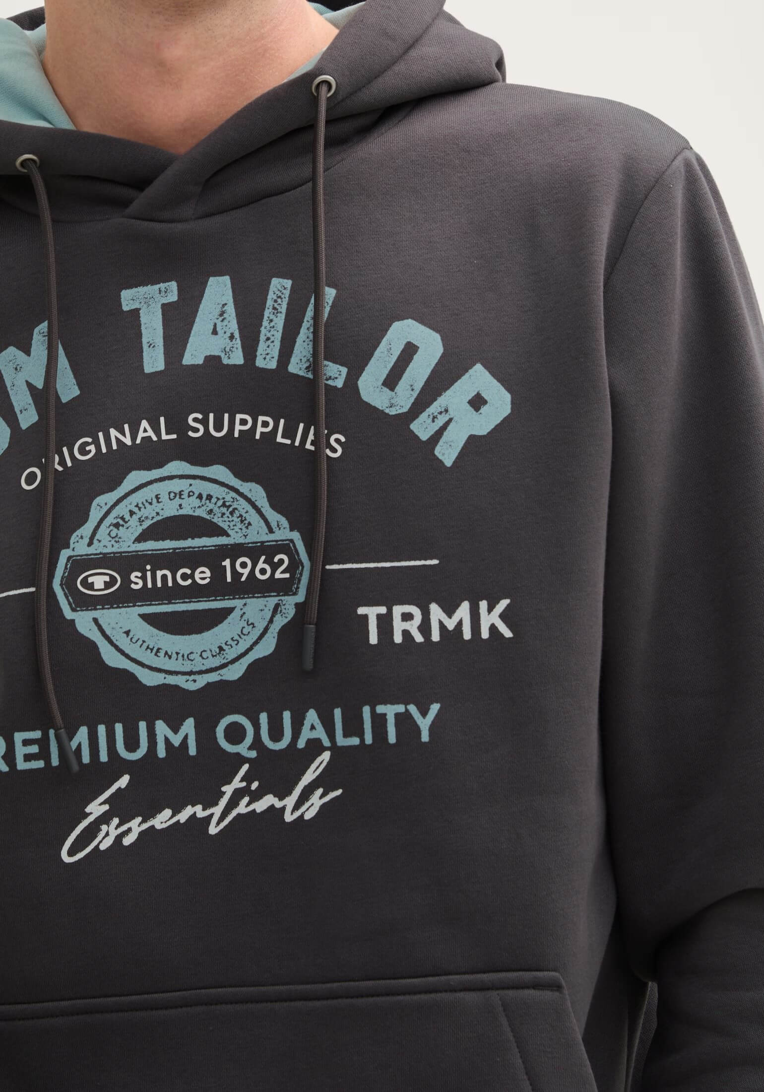 Conhecida por seu estilo urbano e design incomum, a Tom Tailor incorpora detalhes inovadores. Combinados com silhuetas inspiradas em streetwear e uma estética jovial. Assim é este hoodie cinza c/ letras azuis da Tom Tailor. Apresenta mangas compridas, bolso, decote redondo e capuz. Para parte de baixo combina na perfeição com jeans, mas dentro do mesmo estilo. O modelo está a vestir o tamanho S.