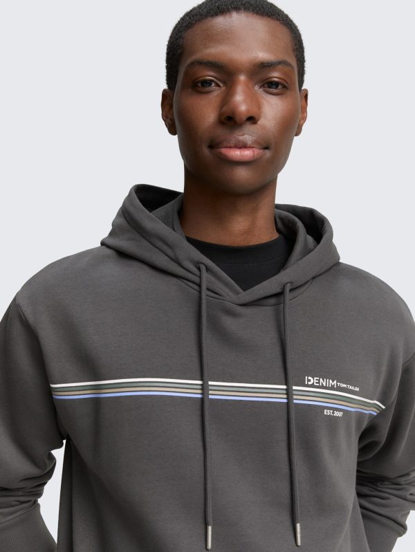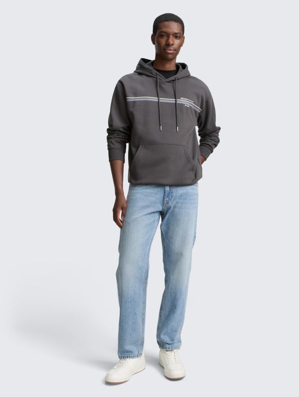 Conhecida por seu estilo urbano e design incomum, a Tom Tailor incorpora detalhes inovadores. Combinados com silhuetas inspiradas em streetwear e uma estética jovial. Assim é este hoodie cinza escuro da Tom Tailor. Apresenta mangas compridas e capuz. Para parte de baixo combina na perfeição com jeans, mas dentro do mesmo estilo. O modelo está a vestir o tamanho S.