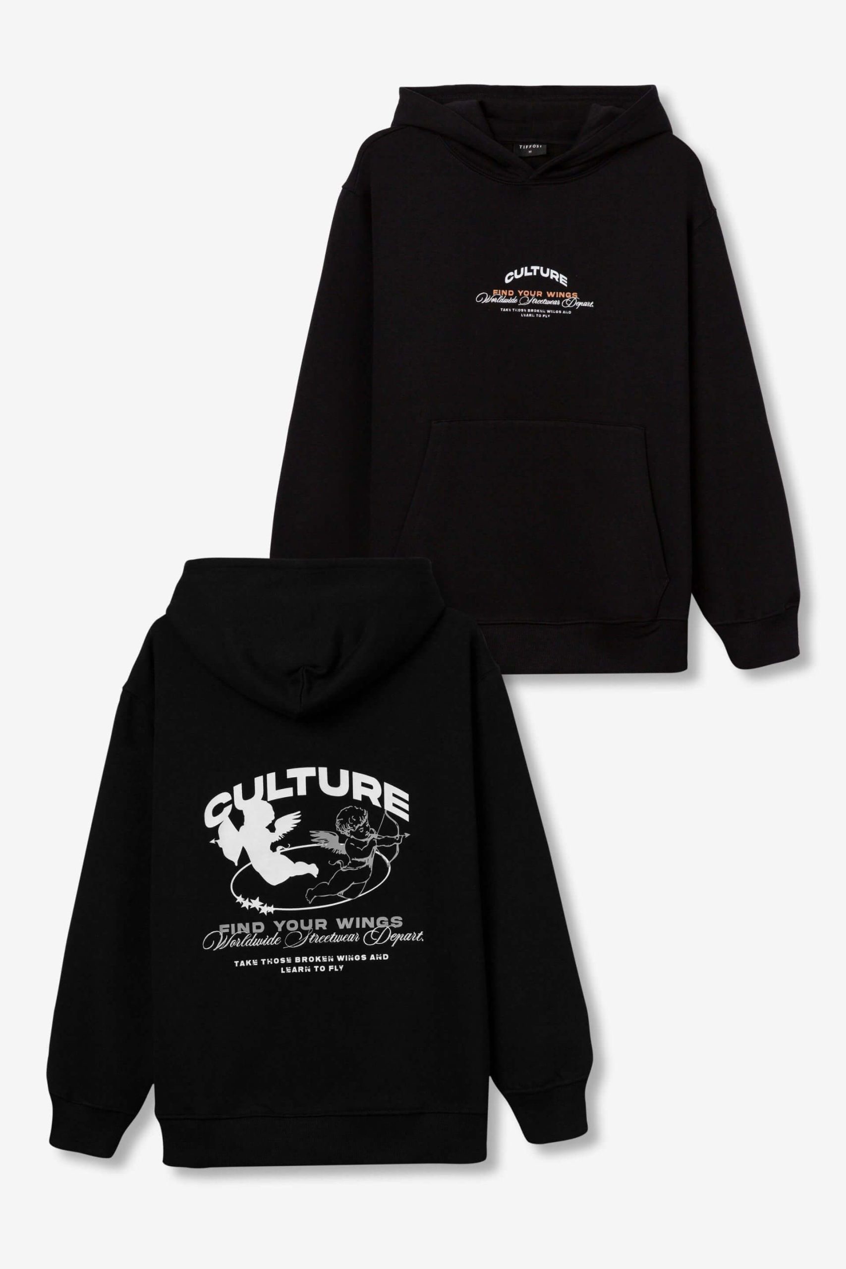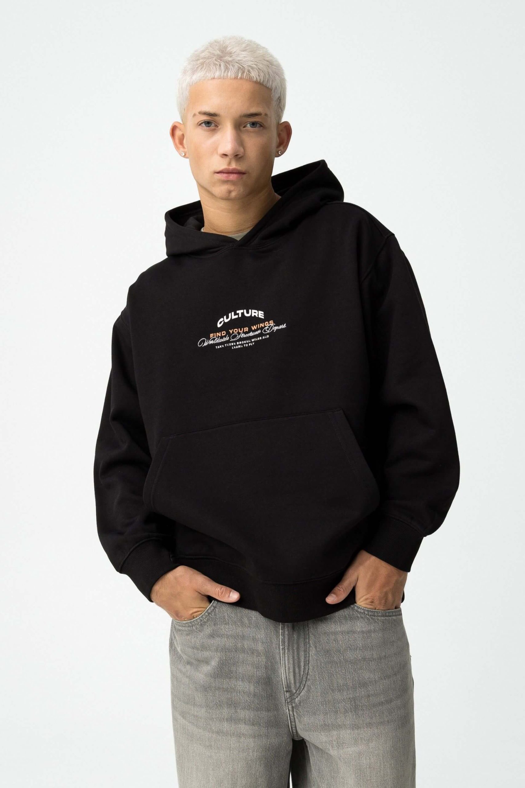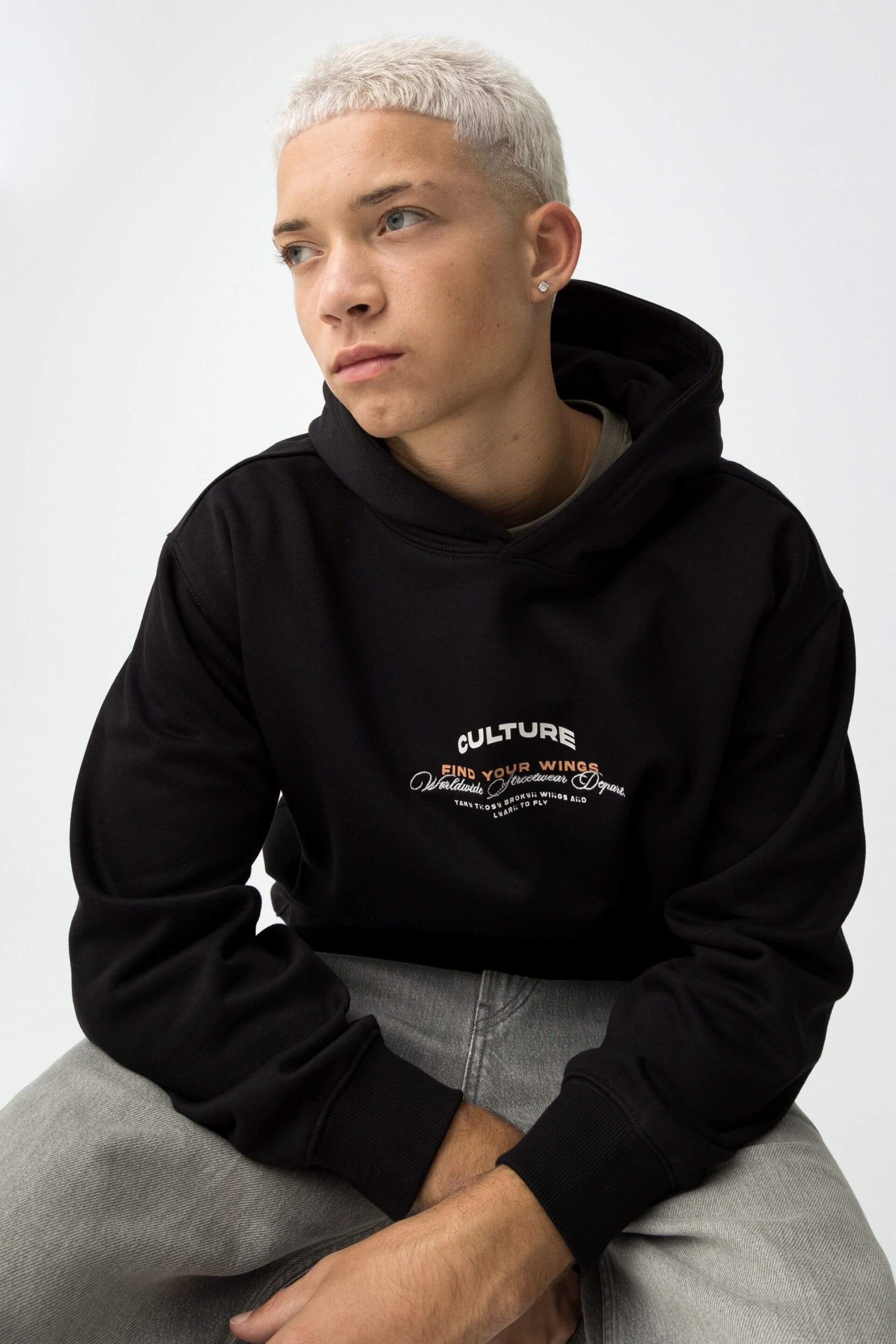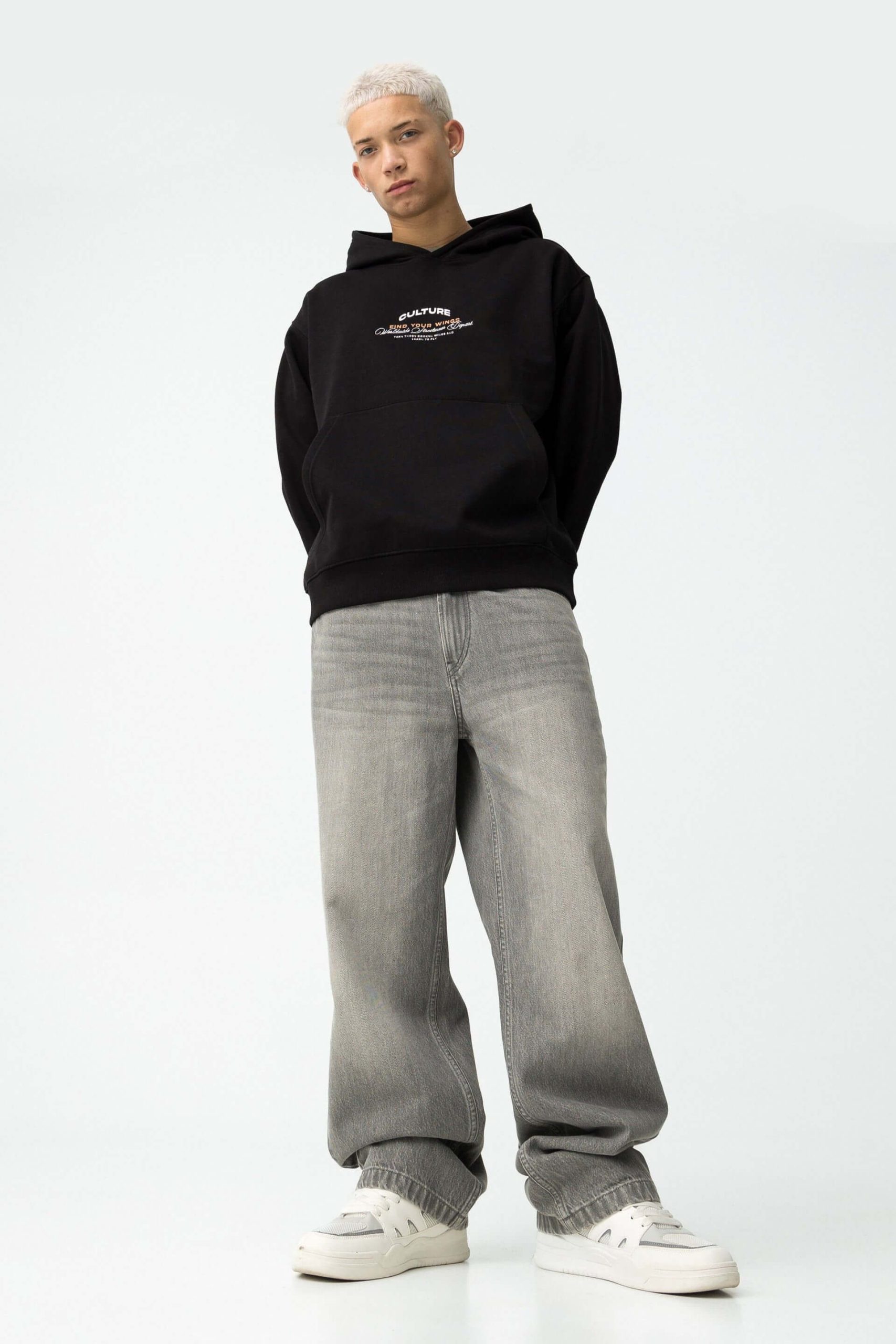 Conhecida por seu estilo urbano e design incomum, a Tiffosi incorpora detalhes inovadores. Combinados com silhuetas inspiradas em streetwear e uma estética jovial. Assim é este hoodie preto c/ estampa na costa da Tiffosi. Tem decote redondo com capuz e manga comprida. Para parte de baixo combina na perfeição com jeans, mas dentro do mesmo estilo. A imagem está no tamanho M / 164 cm.