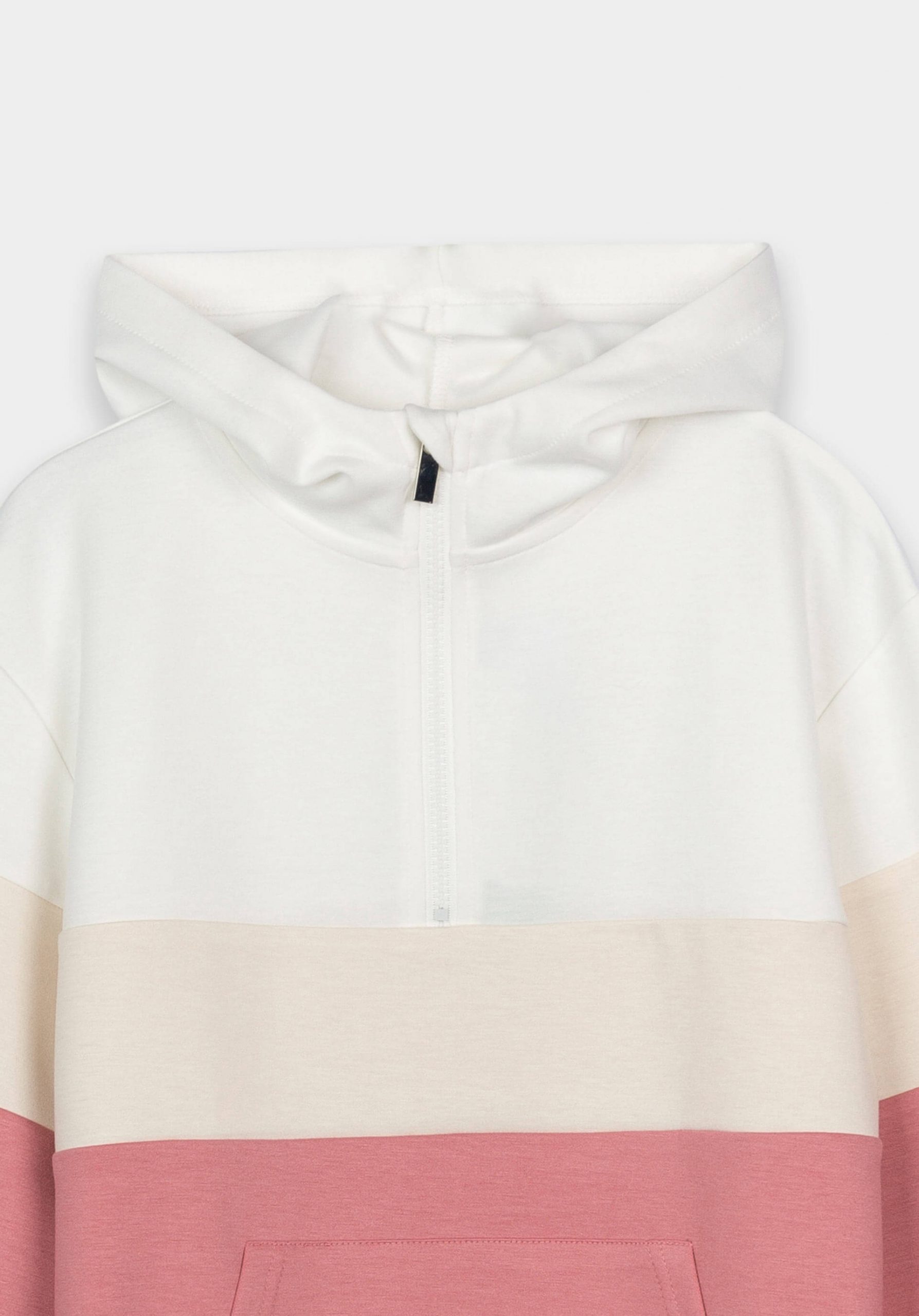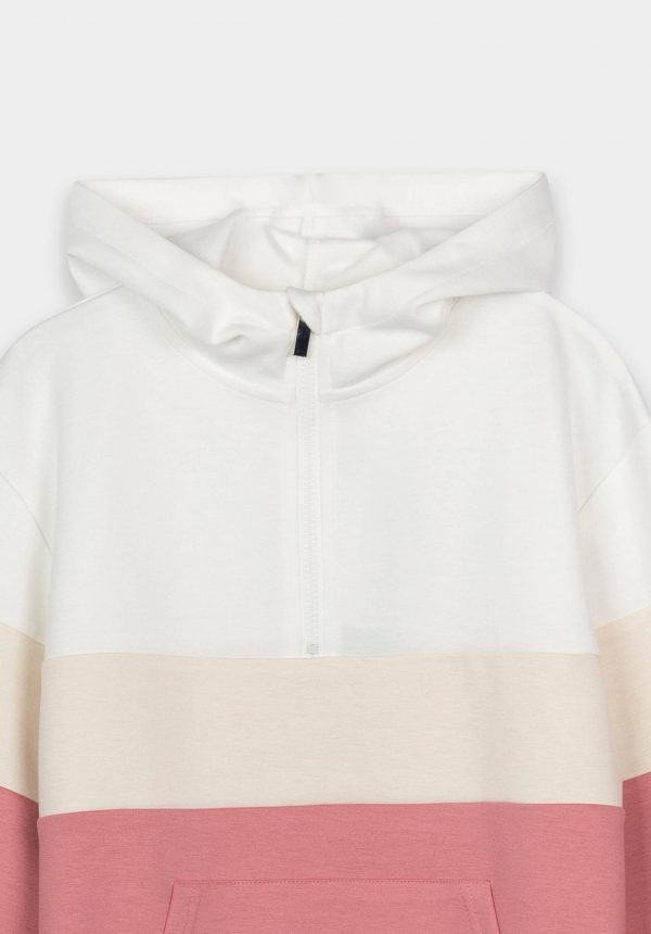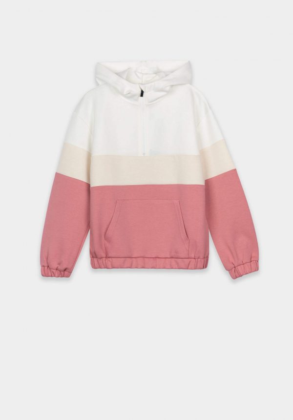 Pense em silhuetas dos anos 80, painéis pesados, denim super skinny e estampas de bandana. Pois bem essa era voltou aos dias de hoje. Conhecida por seu estilo urbano e design incomum, a Tiffosi incorpora detalhes nativos portugueses. Assim é este hoodie tricolor c/ fecho da Tiffosi. Com manga comprida e capuz. Para parte de baixo combina na perfeição com calças mas a dar com o tom. A imagem está no tamanho 9-10 anos /140 cm.