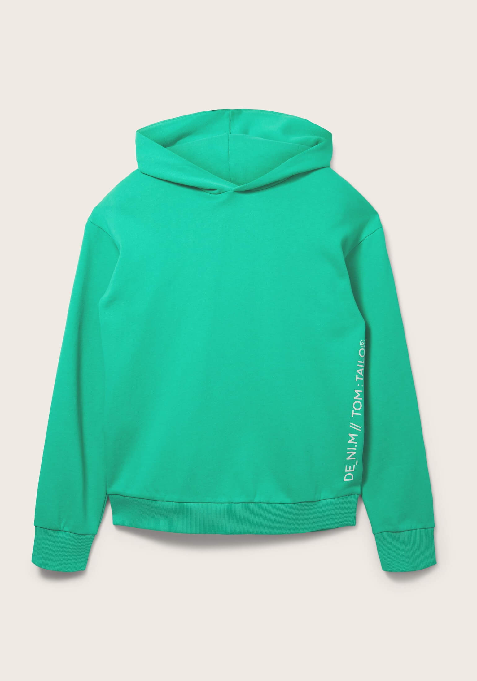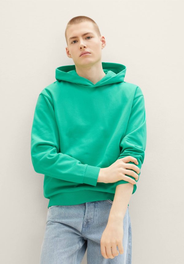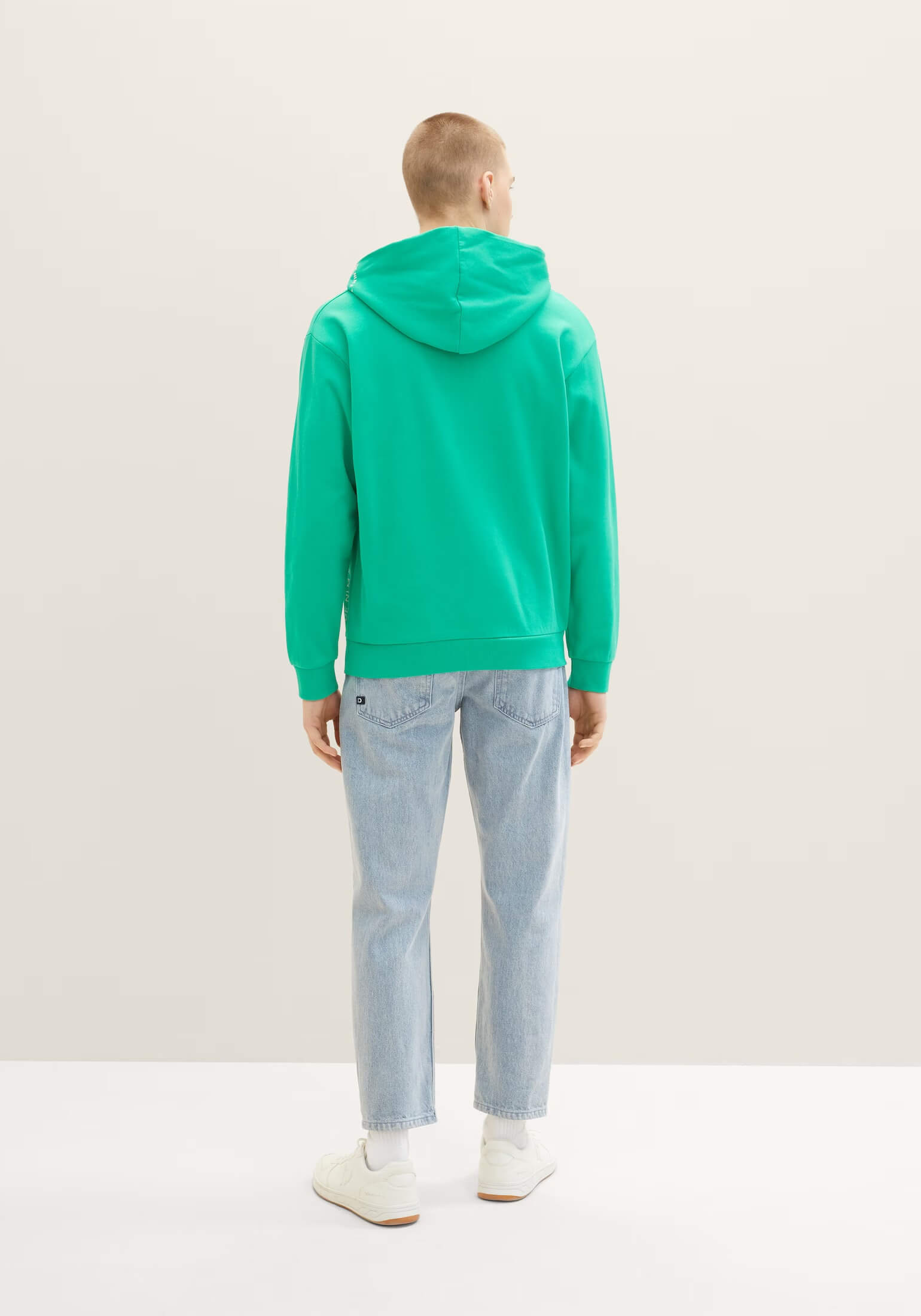 Conhecida por seu estilo urbano e design incomum, a Tom Tailor incorpora detalhes inovadores. Combinados com silhuetas inspiradas em streetwear e uma estética jovial. Assim é este hoodie verde da Tom Tailor. Apresenta mangas compridas e capuz. Para parte de baixo combina na perfeição com jeans, mas dentro do mesmo estilo. O modelo está a vestir o tamanho S.