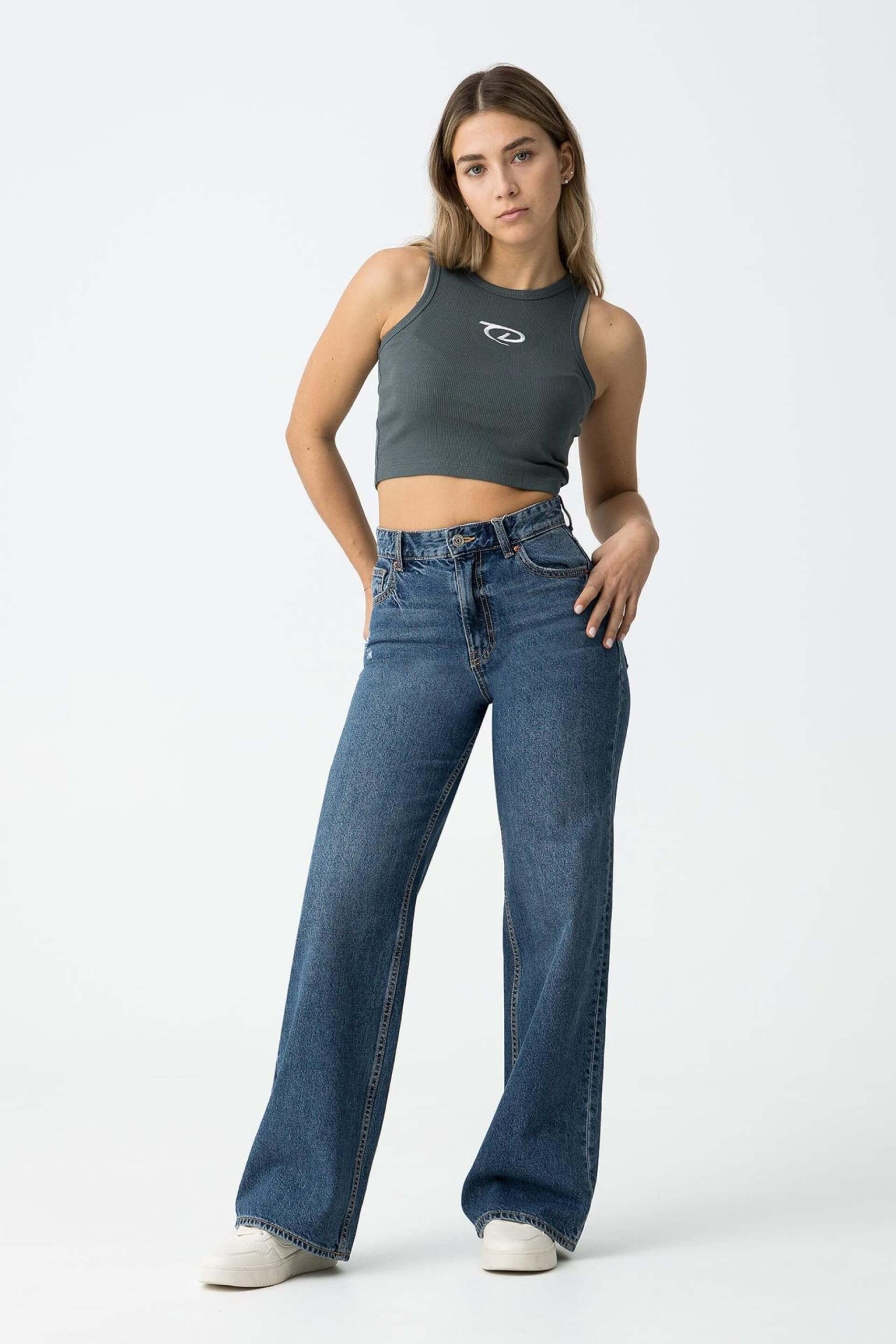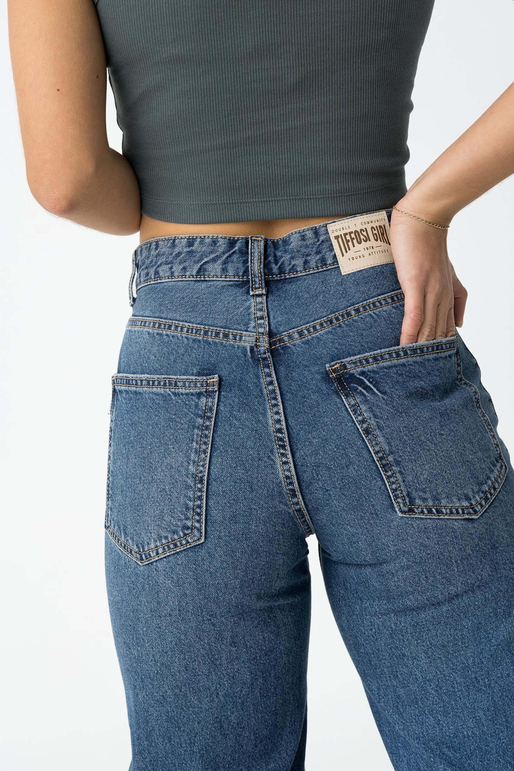 Pense em silhuetas dos anos 80, painéis pesados, denim super skinny e estampas de bandana. Pois bem essa era voltou aos dias de hoje. Conhecida por seu estilo urbano e design incomum, a Tiffosi incorpora detalhes nativos portugueses. Assim são estes jeans c/ perna larga e cinta alta. Tem 5 bolsos, fecho de metal e botão metálico no cós. Para parte de cima combina na perfeição com camisa ou camisola mas a dar com o tom. A imagem está no tamanho 13/14 anos /164 cm.