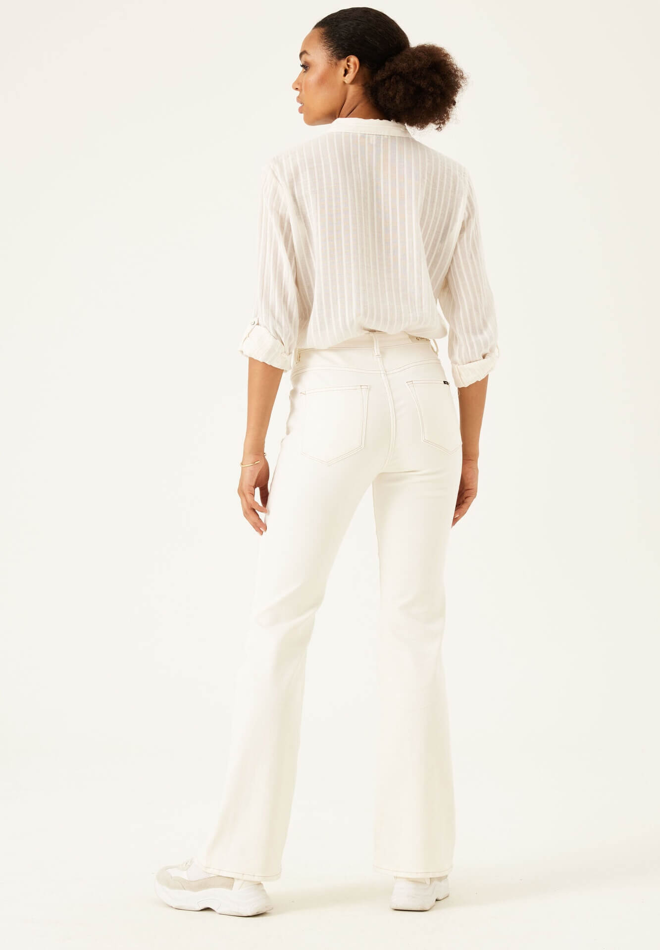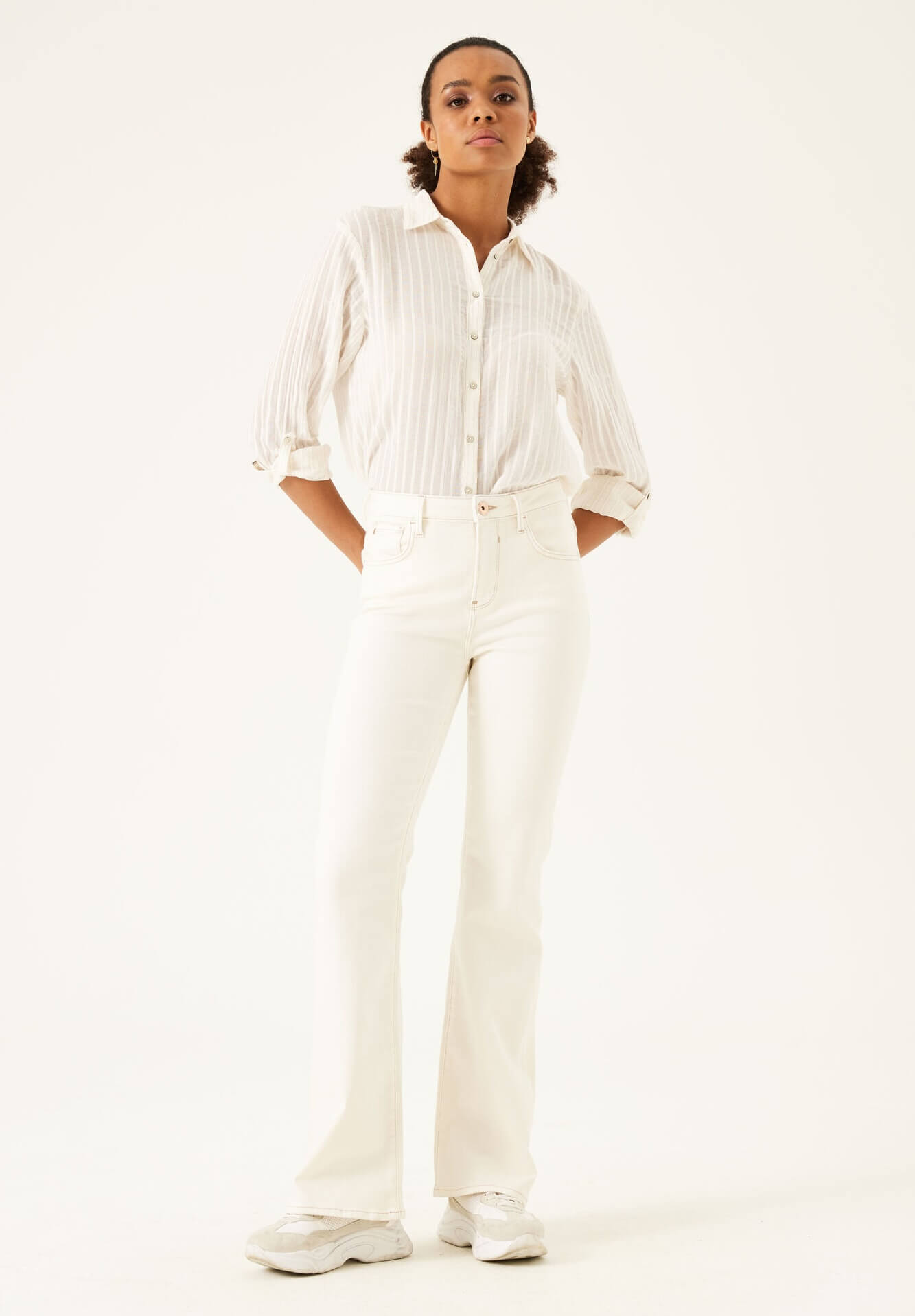 Combinando a história dos fundadores da Garcia Jeans, Maurizio e Isabella Gracia, as suas coleções produzem uma seleção forte de roupas de dia a dia que inspirou o amor do fundador de fazer com que as meninas parecessem mais bonitas no seu dia-a-dia. Assim são estes jeans celia da Garcia Jeans. Com corte de 5 bolsos. Combina com sapatilhas mas dentro do mesmo estilo. A modelo está a vestir o tamanho S.