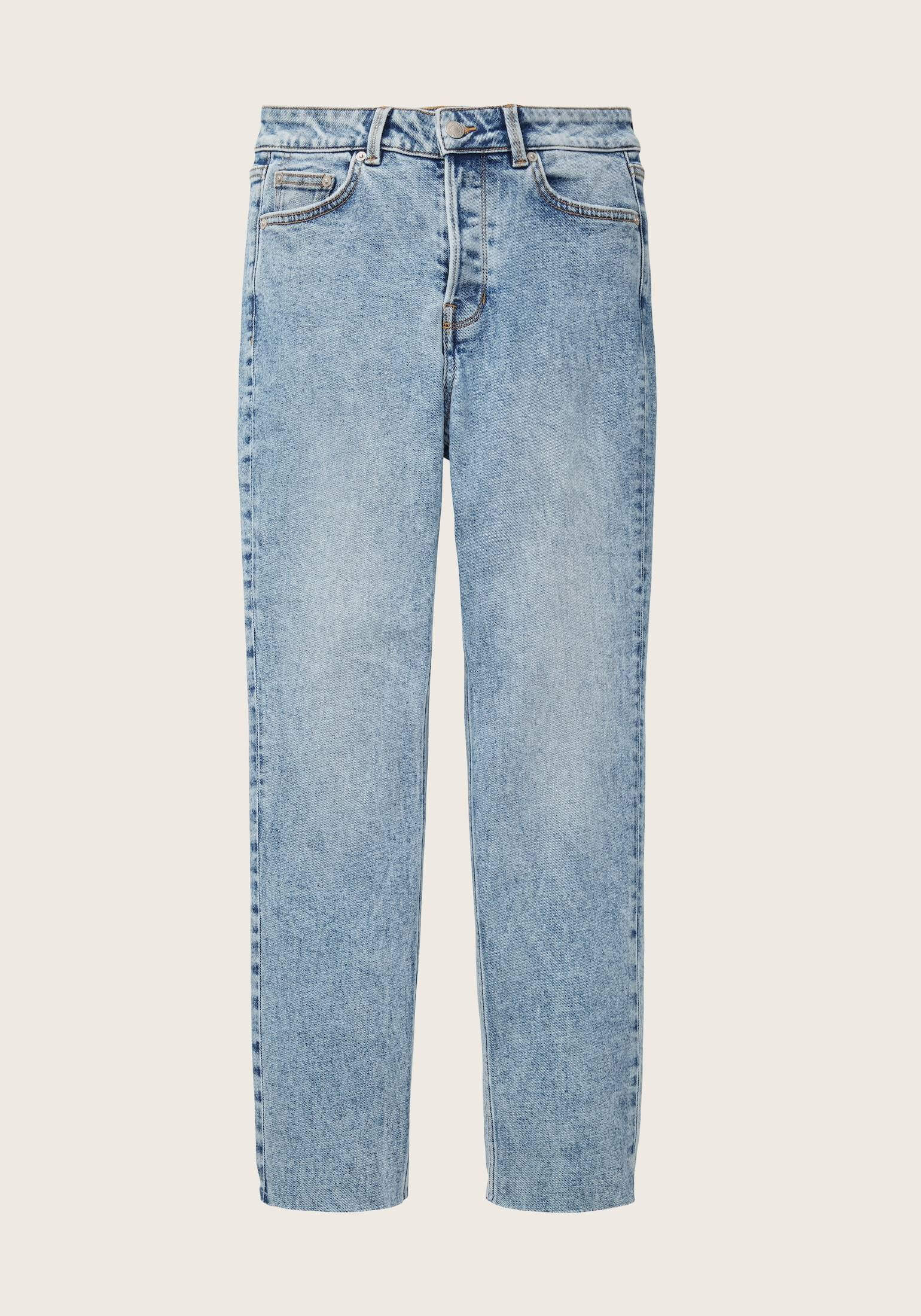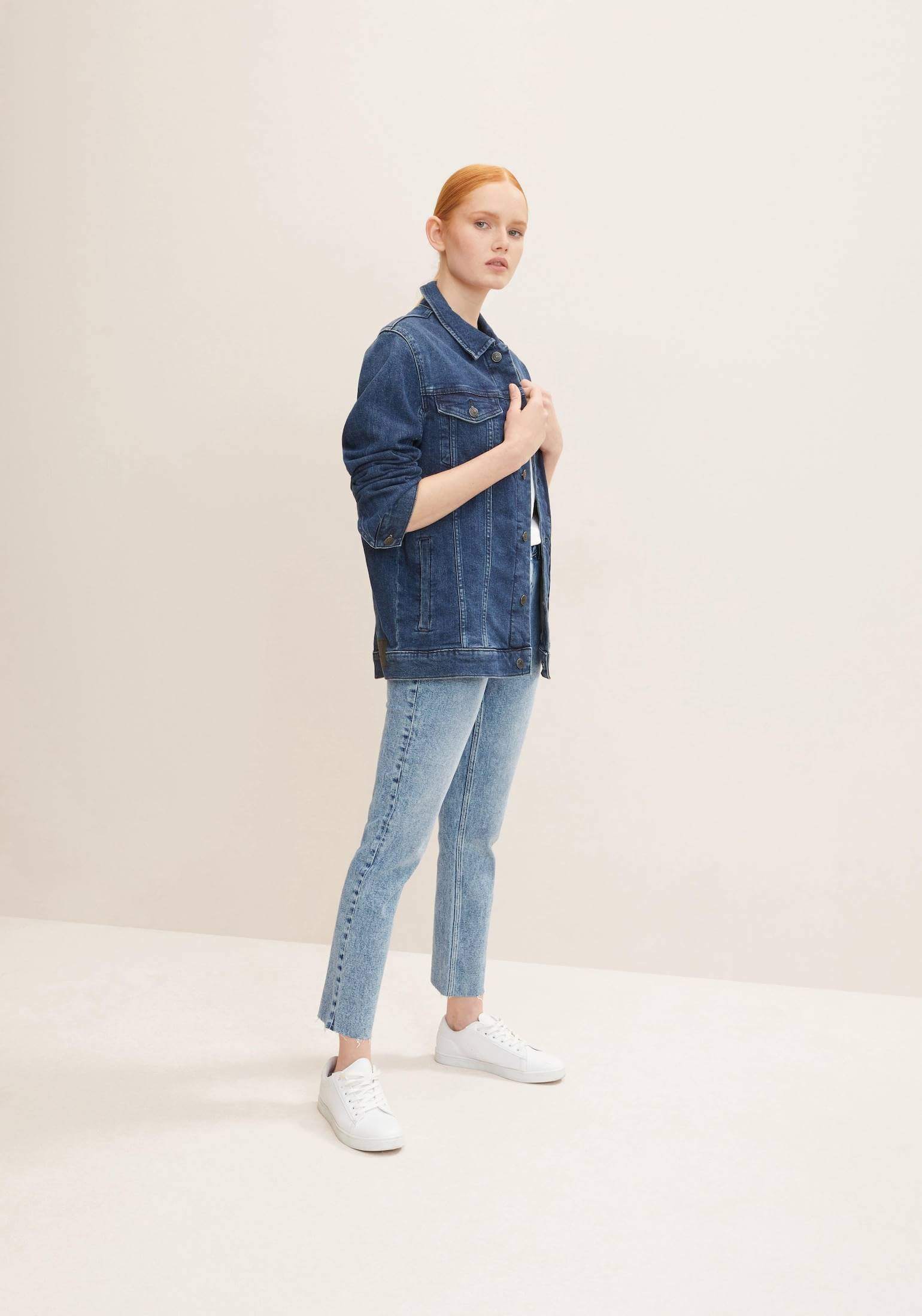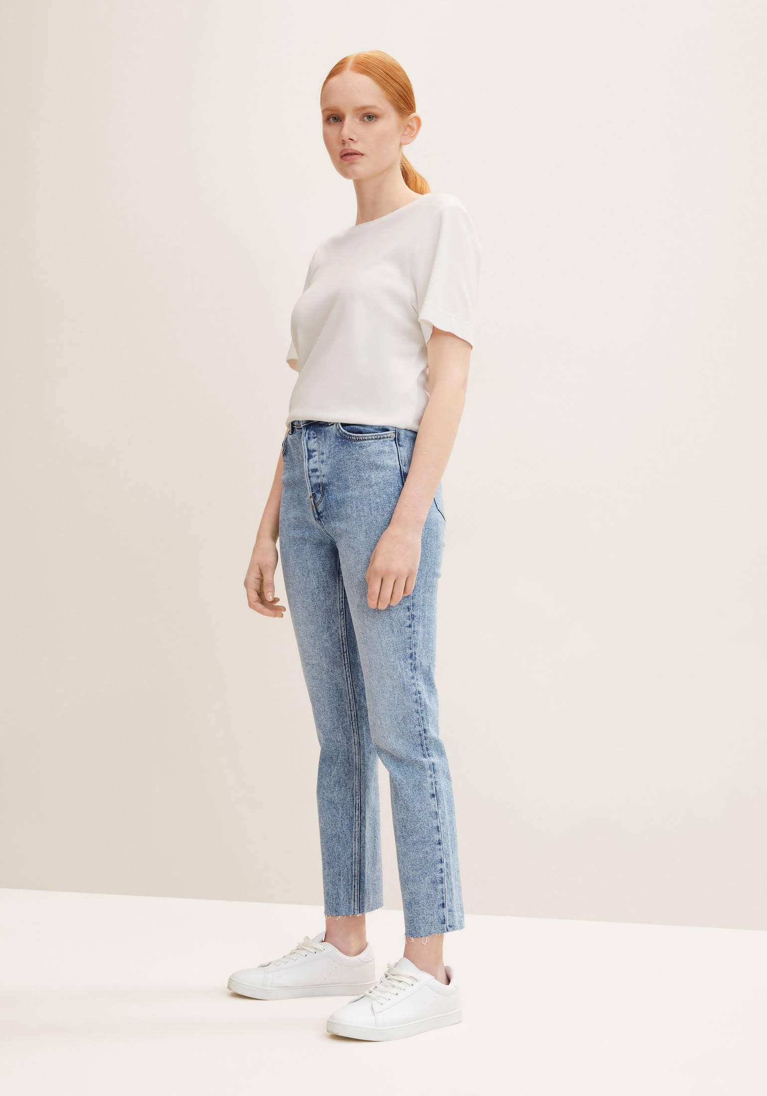 Conhecida por seu estilo urbano e design incomum, a Tom Tailor incorpora detalhes inovadores. Combinados com silhuetas inspiradas em streetwear e uma estética jovial. Assim são estes jeans claros da Tom Tailor. Apresenta corte com cinco bolsos, tem botões no cós e na breguilha. Para parte de cima combina na perfeição com casaco de ganga, mas dentro do mesmo estilo. A modelo está a vestir o tamanho 36.