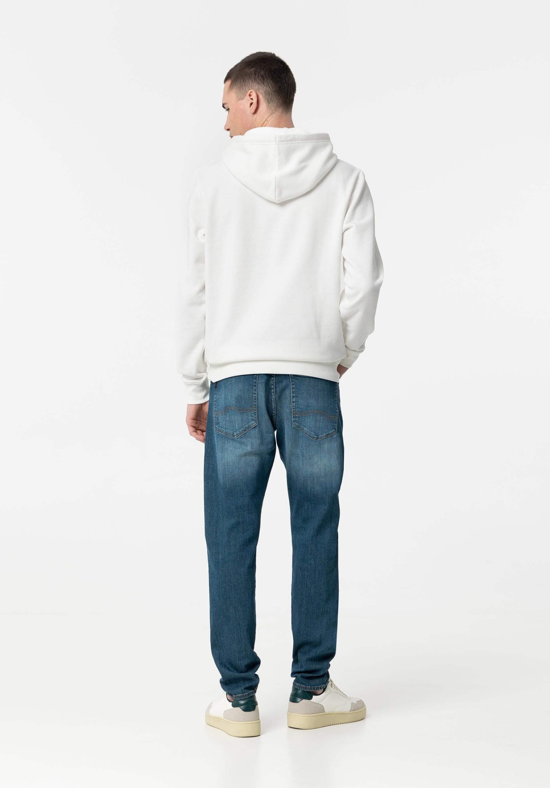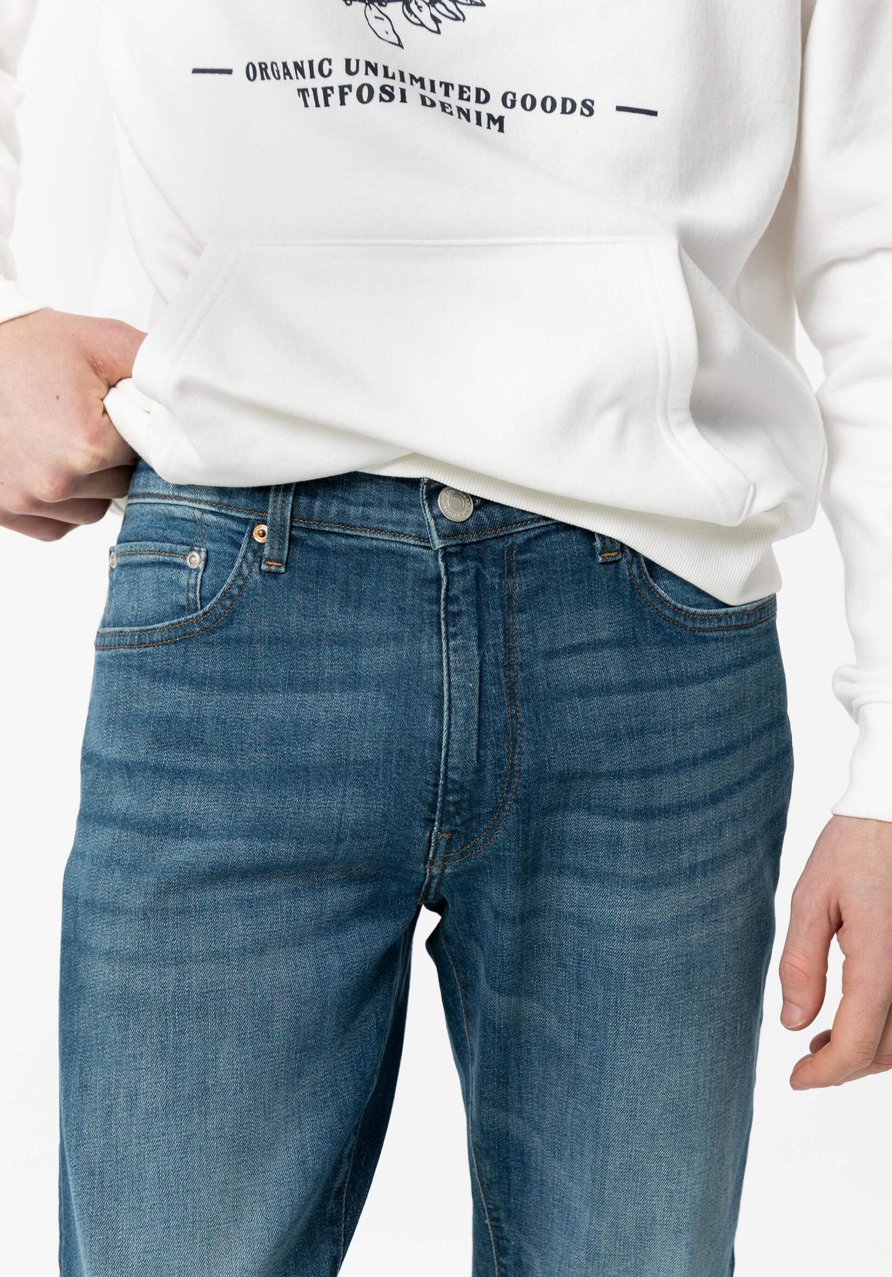 Conhecida por seu estilo urbano e design incomum, a Tiffosi incorpora detalhes inovadores. Combinados com silhuetas inspiradas em streetwear e uma estética jovial. Assim são estes jeans Dylan da Tiffosi. Tem corte com 5 bolsos. Para parte de cima combina na perfeição com camisa, mas dentro do mesmo estilo. O modelo está a vestir o 38.