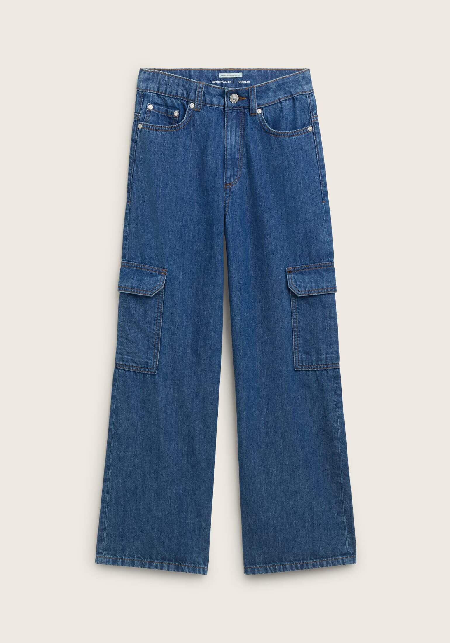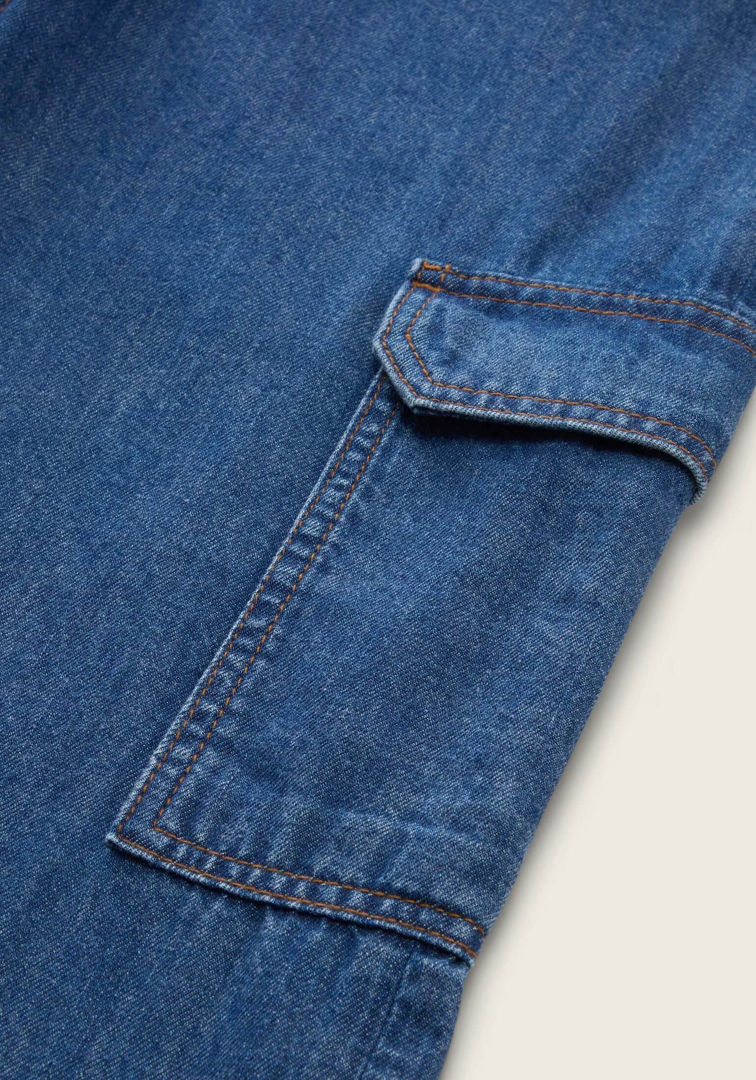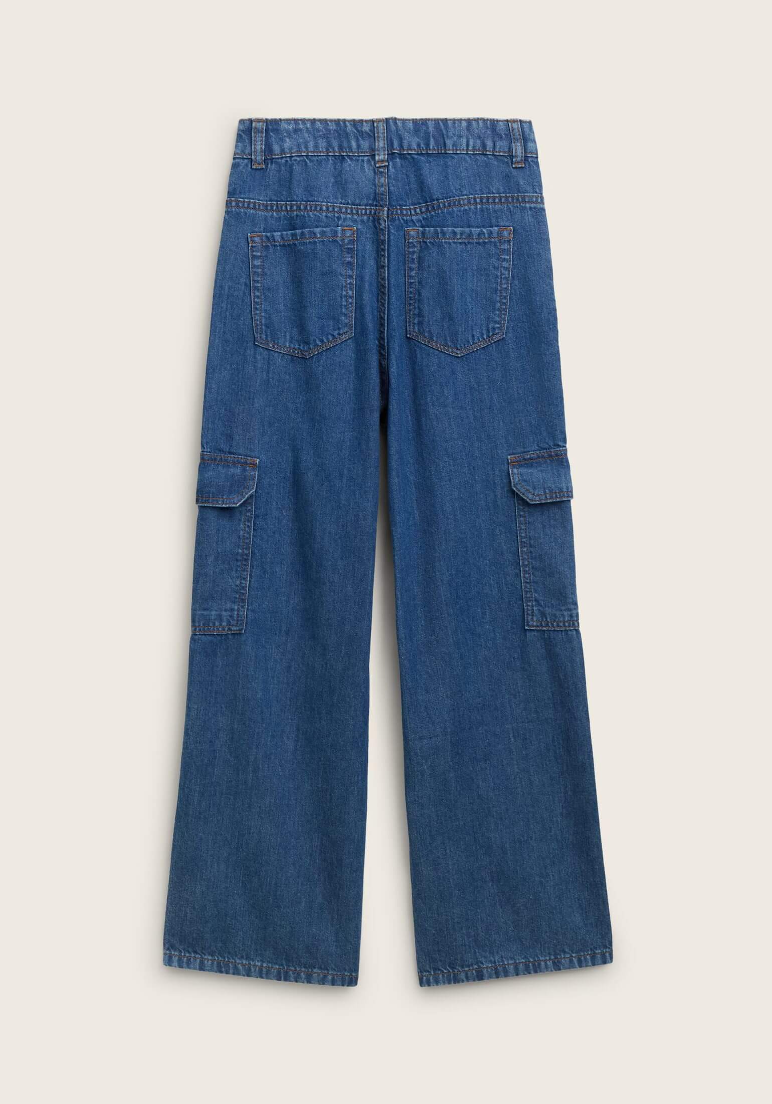Pense em silhuetas dos anos 80, painéis pesados, denim super skinny e estampas de bandana. Pois bem essa era voltou aos dias de hoje. Conhecida por seu estilo urbano e design incomum, a Tom Tailor incorpora detalhes nativos holandeses. Assim são estes jeans largos c/ bolsos de lado da Tom Tailor. Tem corte com 7 bolsos, botão no cós e fecho na carcela. Para parte de cima combina na perfeição com casaco mas a dar com o tom. A imagem está no tamanho 9-10 anos /140 cm.
