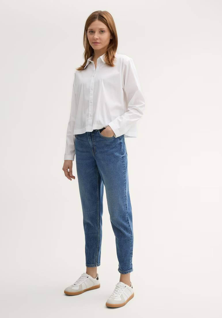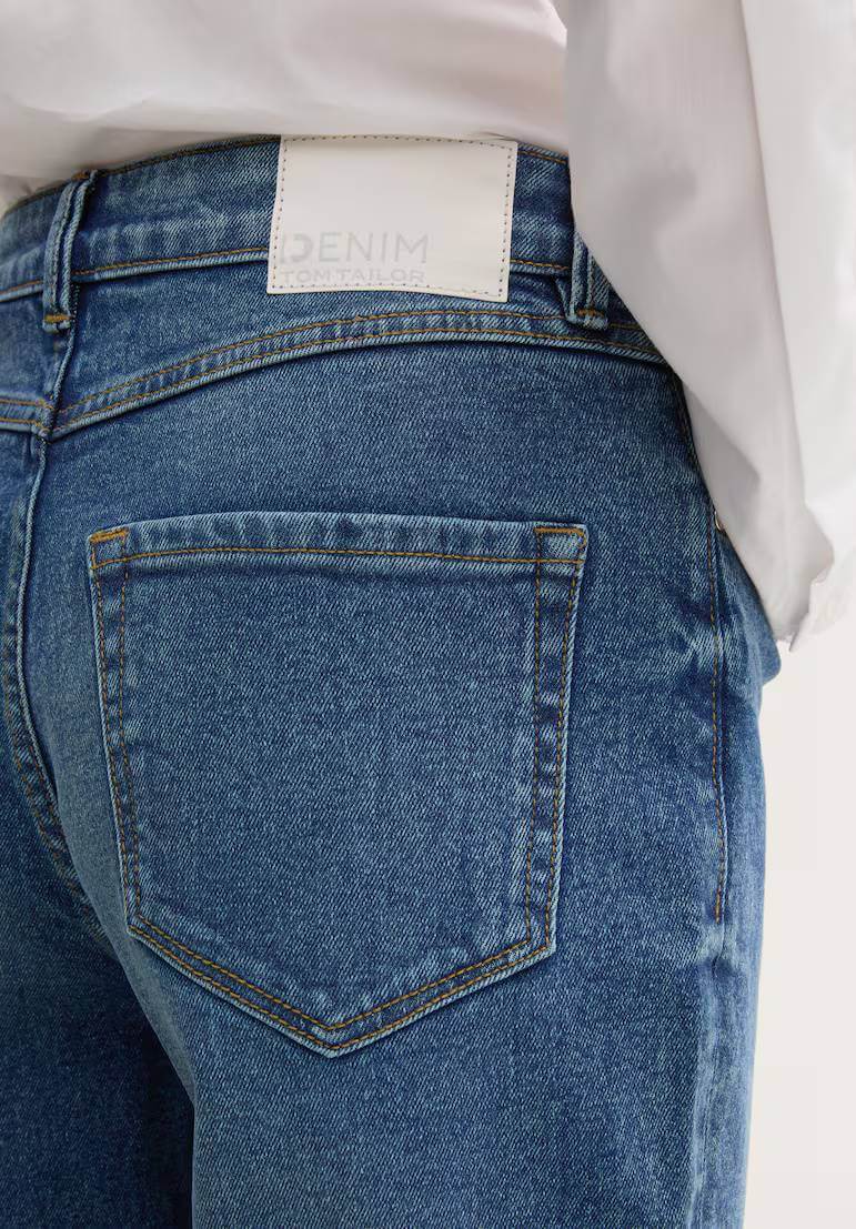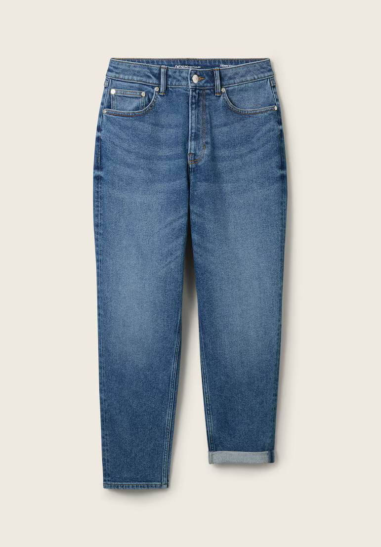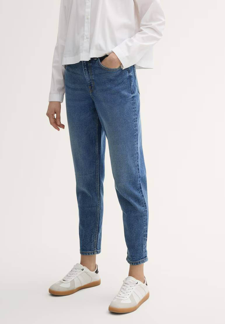 Conhecida por seu estilo urbano e design incomum, a Tom Tailor incorpora detalhes inovadores. Combinados com silhuetas inspiradas em streetwear e uma estética jovial. Assim são estes jeans mom-fit da Tom Tailor. Apresenta corte co 5 bolsos. Para parte de cima combina na perfeição com casaco de ganga, mas dentro do mesmo estilo. A modelo está a vestir o tamanho 36.