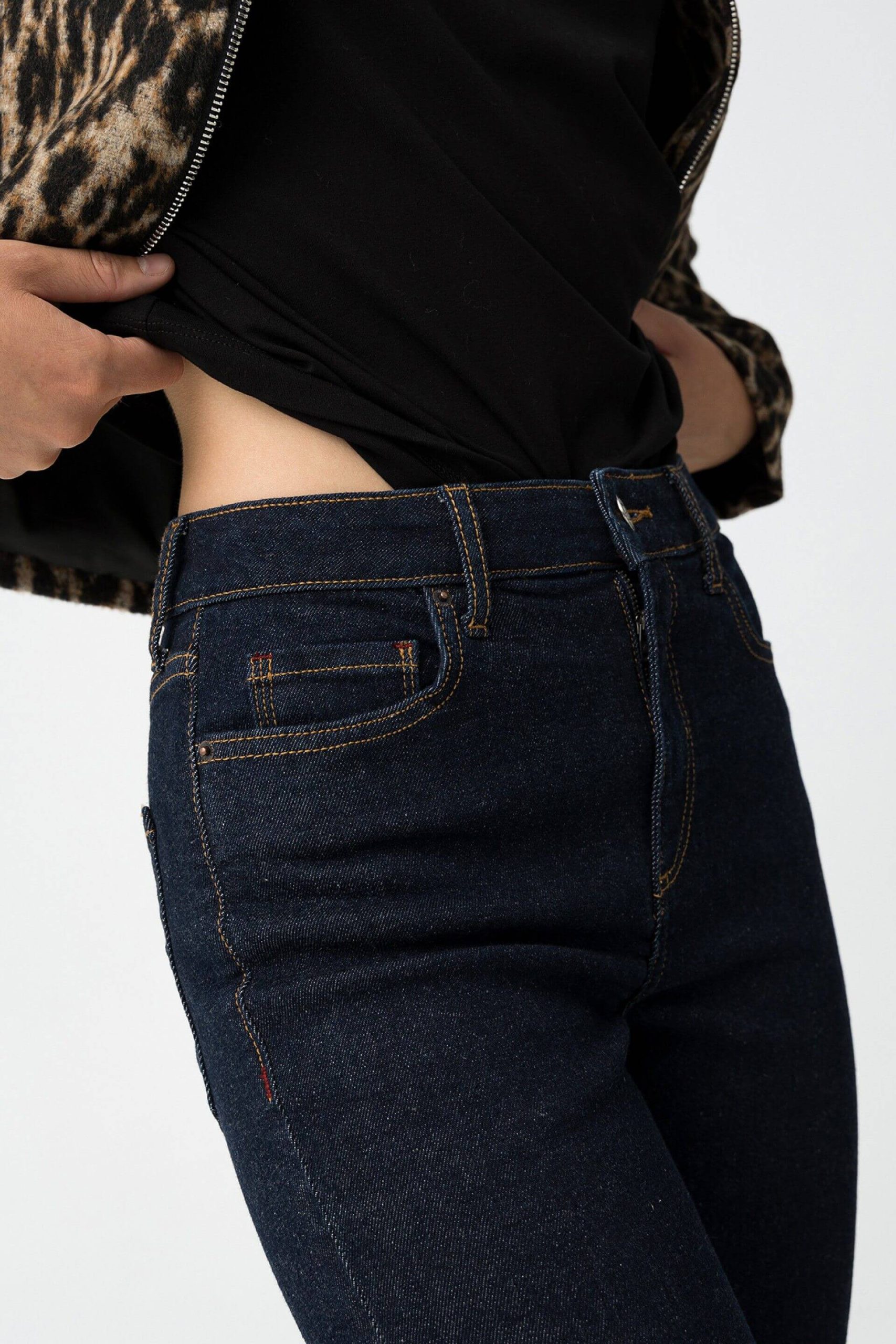 Pense em silhuetas dos anos 80, painéis pesados, denim super skinny e estampas de bandana. Pois bem essa era voltou aos dias de hoje. Assim são estes jeans pretas c/ isolamento térmico interno da Tiffosi. Apresenta corte com 5 bolsos, botão no cós e fecho. Para parte de cima combina na perfeição com t-shirt mas a dar com o tom. A manequim está a vestir o tamanho 34.