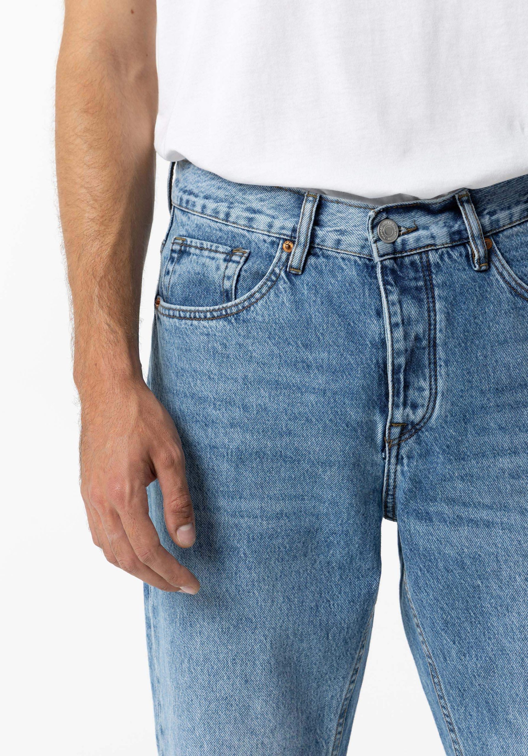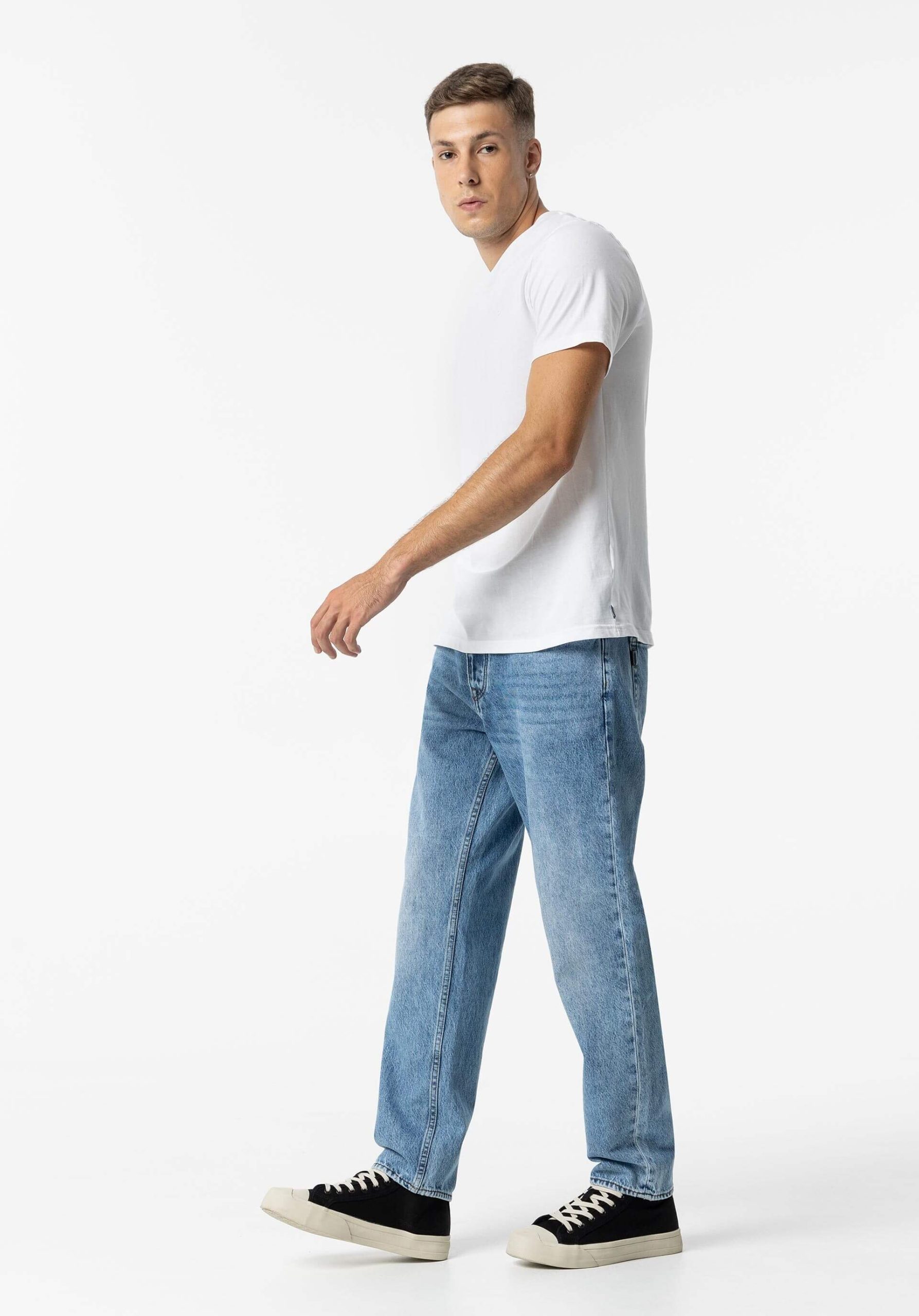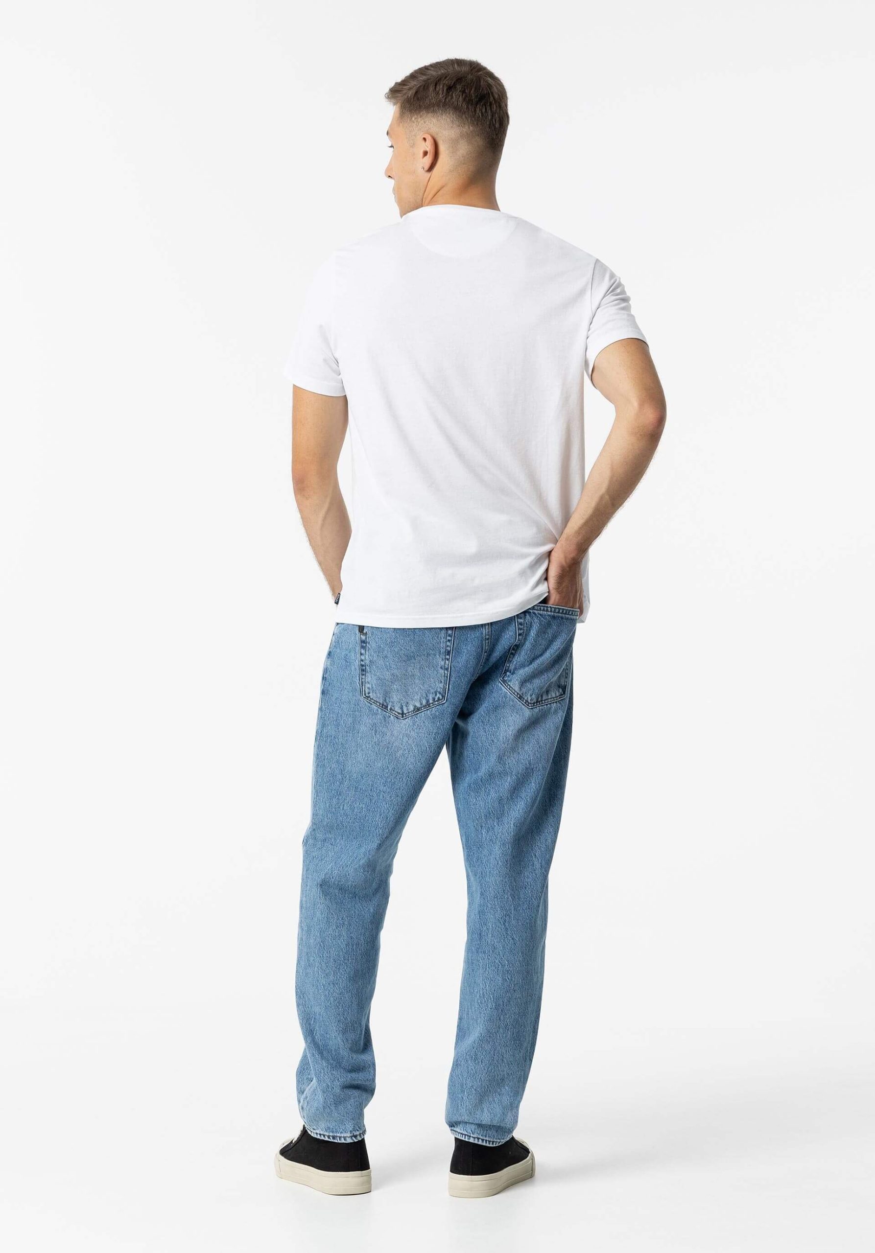 Conhecida por seu estilo urbano e design incomum, a Tiffosi incorpora detalhes inovadores. Combinados com silhuetas inspiradas em streetwear e uma estética jovial. Assim são estes jeans relaxed fit da Tiffosi. Tem corte com 5 bolsos. Para parte de cima combina na perfeição com camisa, mas dentro do mesmo estilo. O modelo está a vestir o 38.