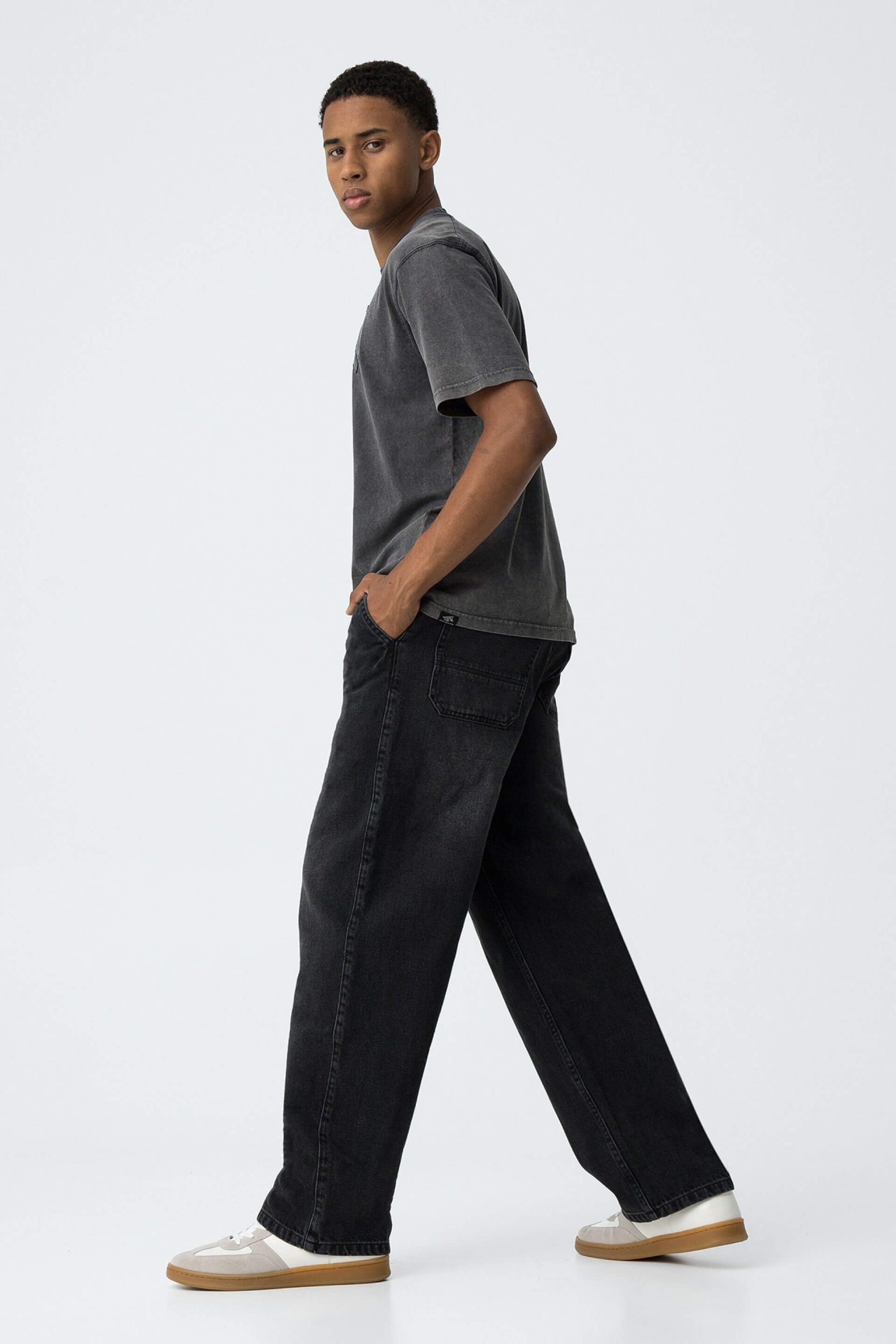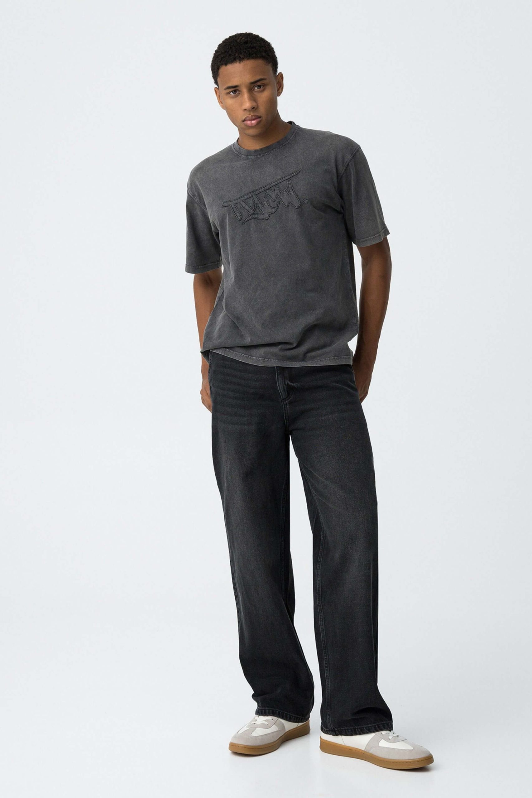 Pense em silhuetas dos anos 80, painéis pesados, denim super skinny e estampas de bandana. Pois bem essa era voltou aos dias de hoje. Conhecida por seu estilo urbano e design incomum, a Tiffosi incorpora detalhes nativos portugueses. Assim são estes jeans skater fit da Tiffosi. Com cinco bolsos, fecho zip e botão metálico. Para parte de cima combina na perfeição com camisa ou camisola mas a dar com o tom. A imagem está no tamanho S /164 cm.