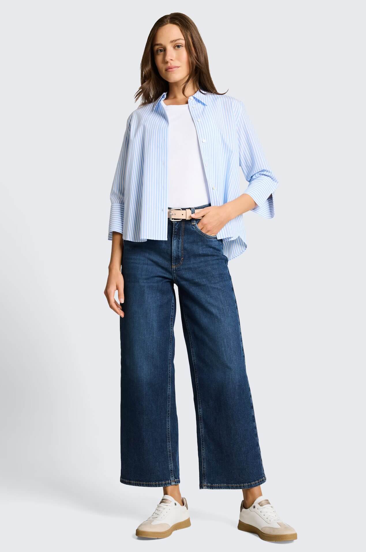 Conhecida por seu estilo urbano e design incomum, a Tom Tailor incorpora detalhes inovadores. Combinados com silhuetas inspiradas em streetwear e uma estética jovial. Assim são estes jeans ttnelma da Tom Tailor. Apresenta corte com cinco bolsos, tem botões no cós e fecho na breguilha. Para parte de cima combina na perfeição com casaco de ganga, mas dentro do mesmo estilo. A modelo está a vestir o tamanho 36.