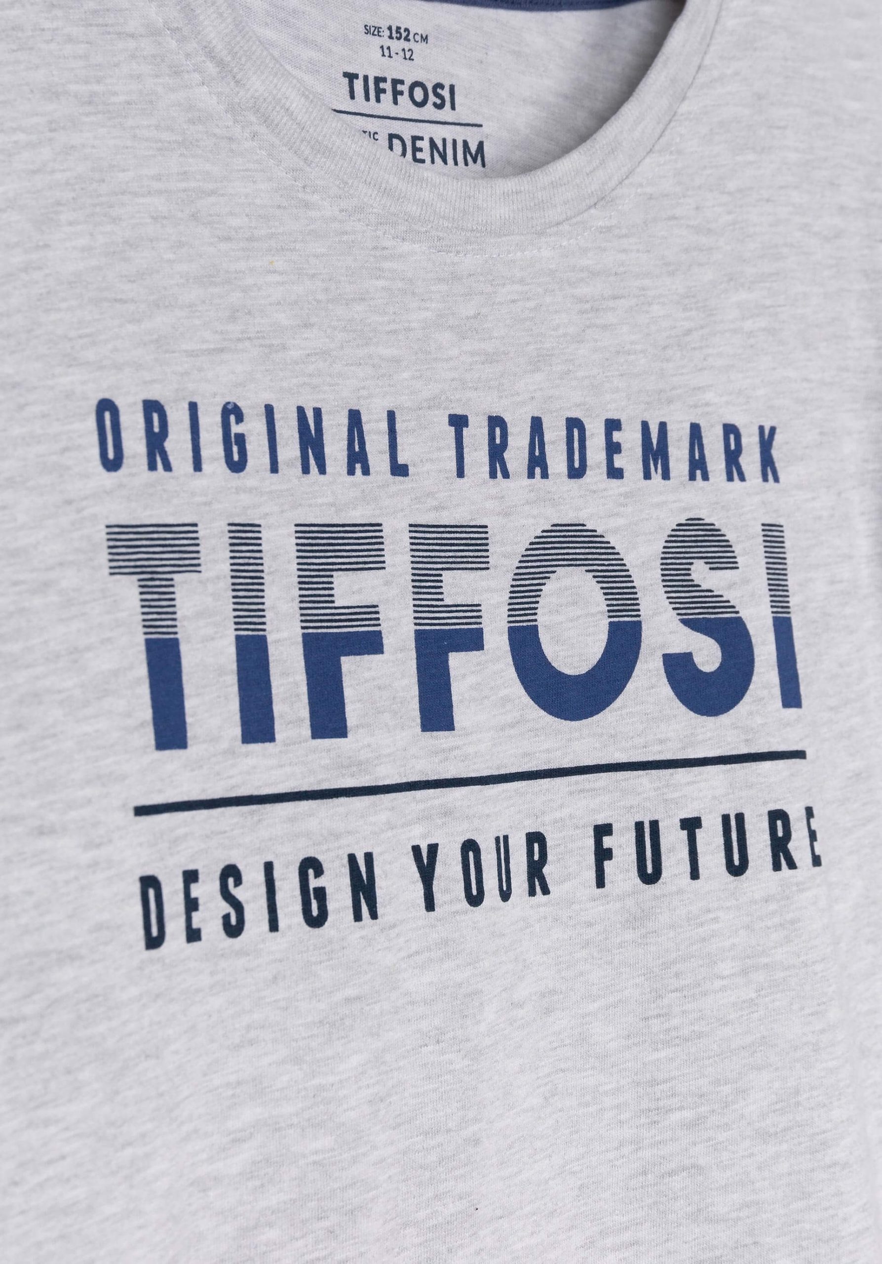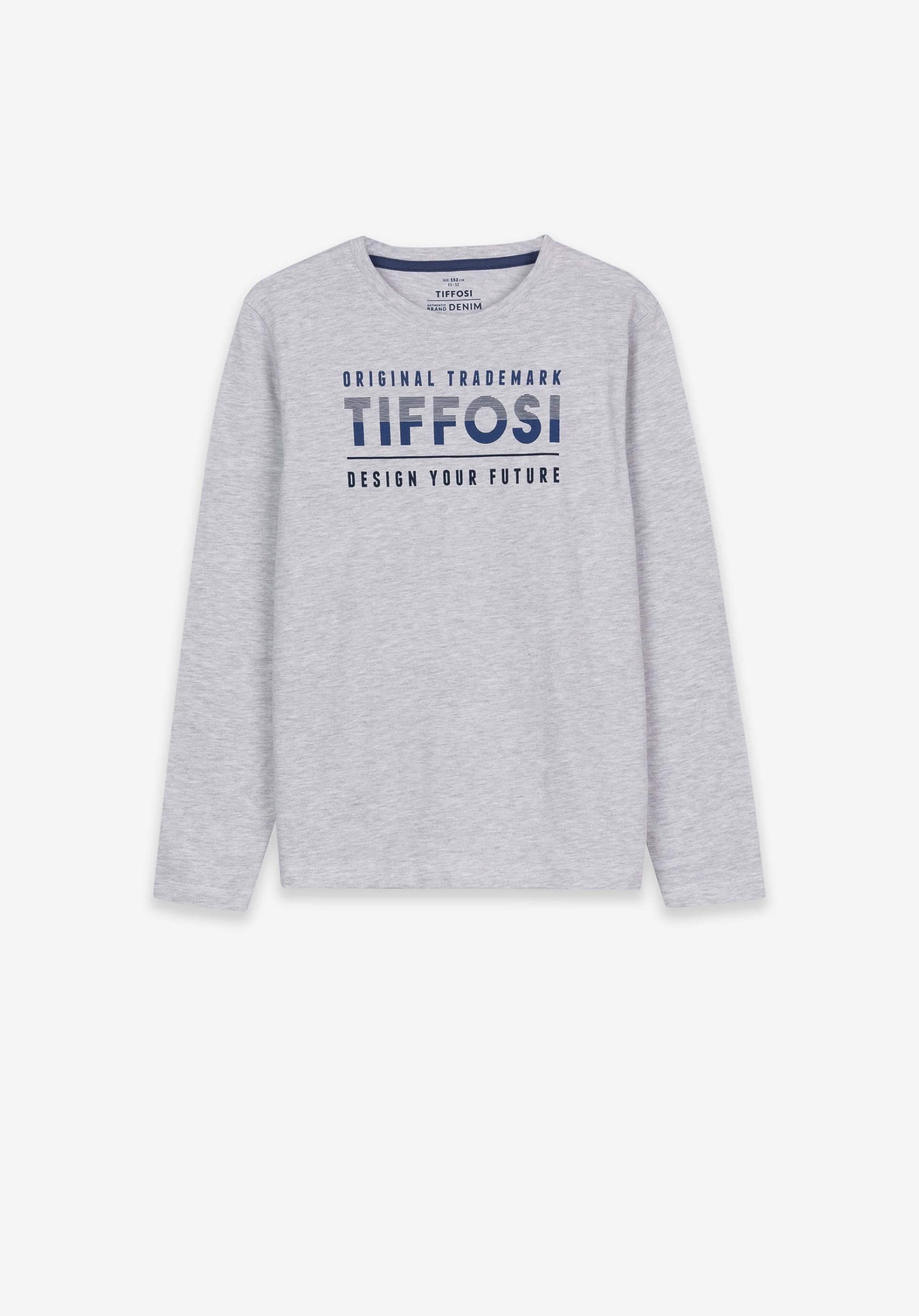 Conhecida por seu estilo urbano e design incomum, a Tiffosi incorpora detalhes inovadores. Combinados com silhuetas inspiradas em streetwear e uma estética jovial. Assim é esta longsleeve cinza claro c/ estampa da Tiffosi. Tem decote redondo e manga comprida. Para parte de baixo combina na perfeição com jeans, mas dentro do mesmo estilo. A imagem está no tamanho 9-10 anos / 140 cm.