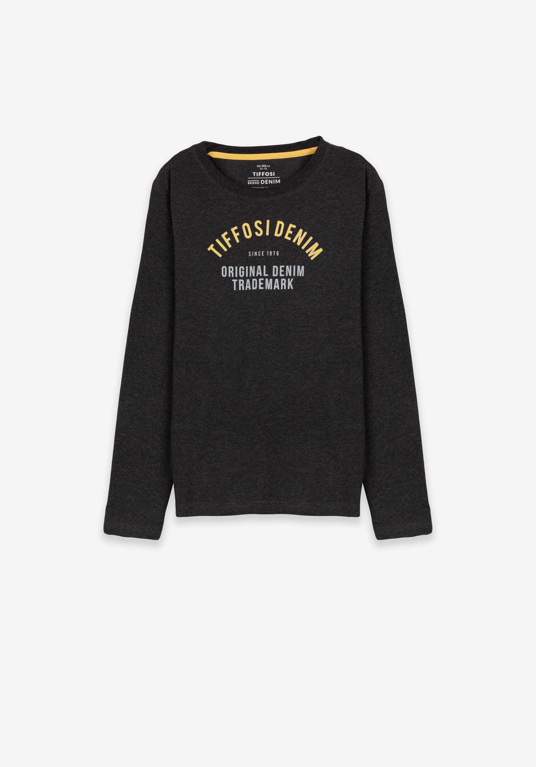 Conhecida por seu estilo urbano e design incomum, a Tiffosi incorpora detalhes inovadores. Combinados com silhuetas inspiradas em streetwear e uma estética jovial. Assim é esta longsleeve cinza escuro c/ estampa da Tiffosi. Tem decote redondo e manga comprida. Para parte de baixo combina na perfeição com jeans, mas dentro do mesmo estilo. A imagem está no tamanho 9-10 anos / 140 cm.