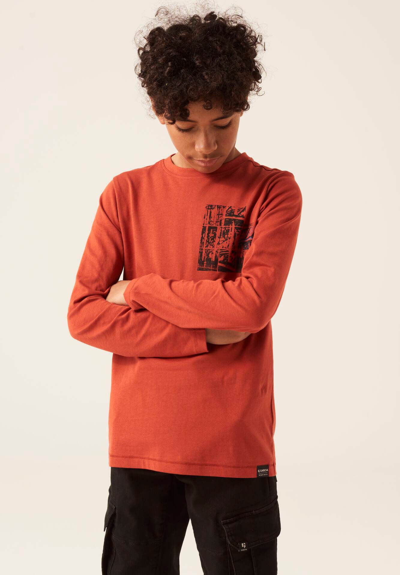 Combinando a história dos fundadores da Garcia Jeans, Maurizio e Isabella Gracia, as suas coleções produzem uma seleção forte de roupas de dia a dia que inspirou o amor do fundador de fazer com que as meninas parecessem mais bonitas no seu dia-a-dia. Assim é esta longsleeve laranja da Garcia Jeans. Tem decote redondo e manga comprida. Combina para parte de baixo com jeans mas dentro do mesmo estilo. A modelo está a vestir o 9-10 anos / 140 cm.