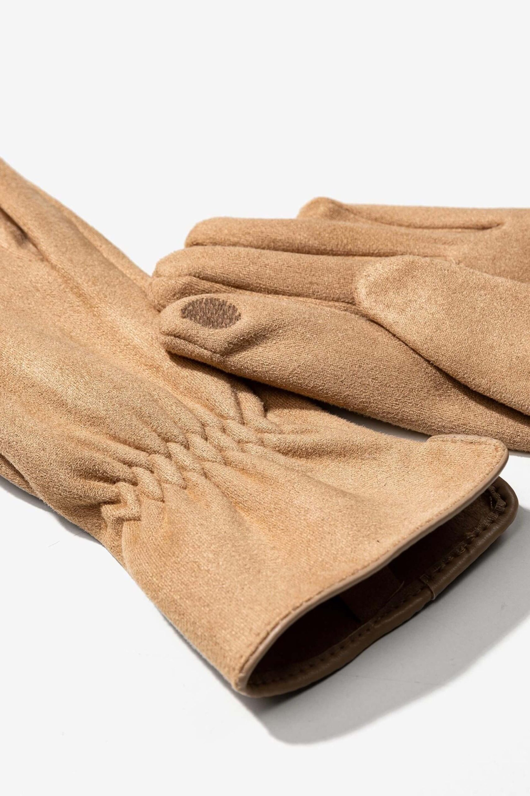 Conhecida por seu estilo urbano e design incomum, a Tiffosi incorpora detalhes inovadores. Combinados com silhuetas inspiradas em streetwear e uma estética jovial. Assim são estas luvas camel de camurça c/ punho franzido da Tiffosi. Combina na perfeição com camisa, mas dentro do mesmo estilo.
