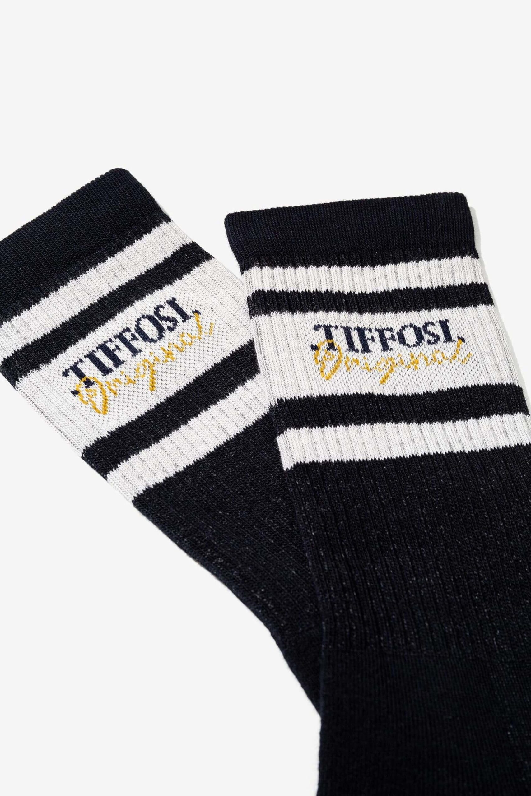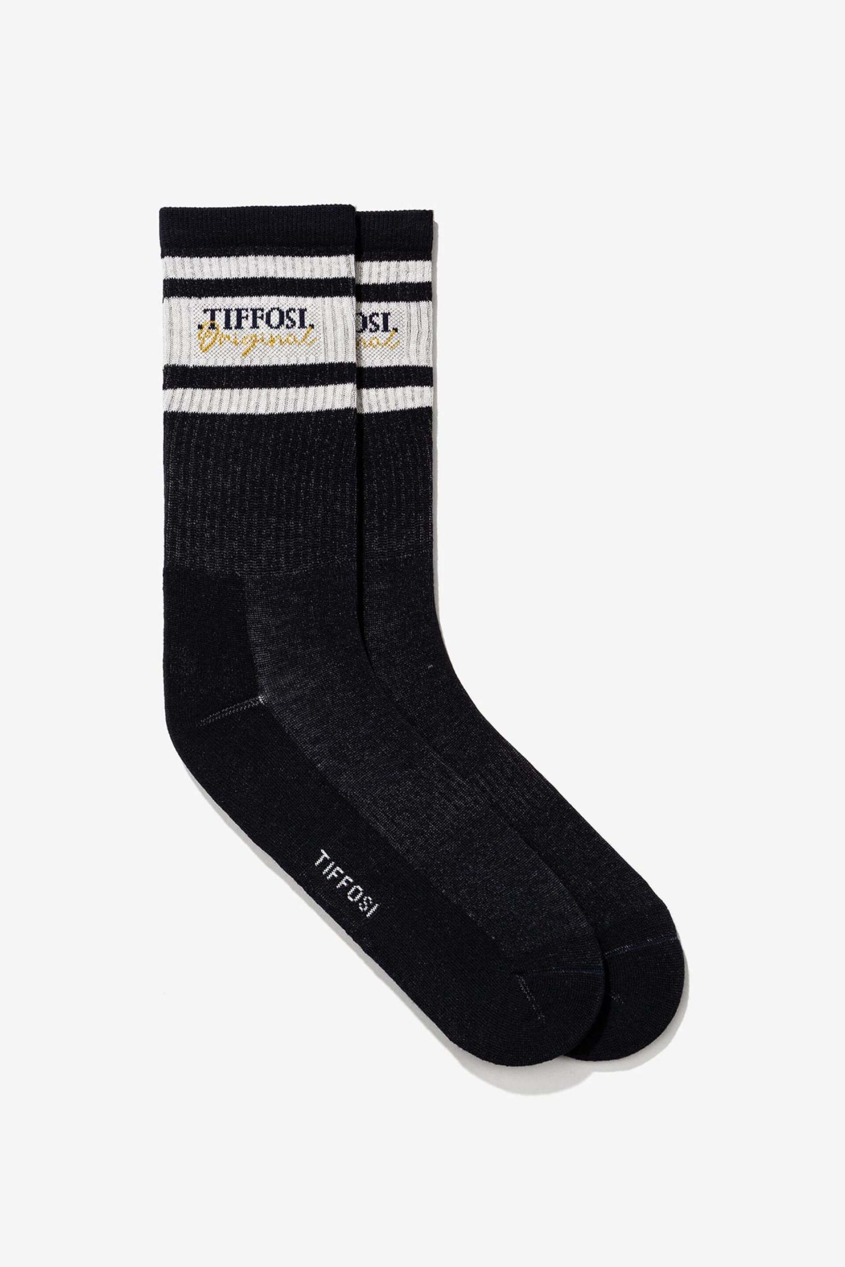 Pense em silhuetas dos anos 80, painéis pesados, denim super skinny e estampas de bandana. Pois bem essa era voltou aos dias de hoje. Assim são estas meias azuis c/ risca da Tiffosi. Apresenta elástico. O modelo está no tamanho 40-44.
