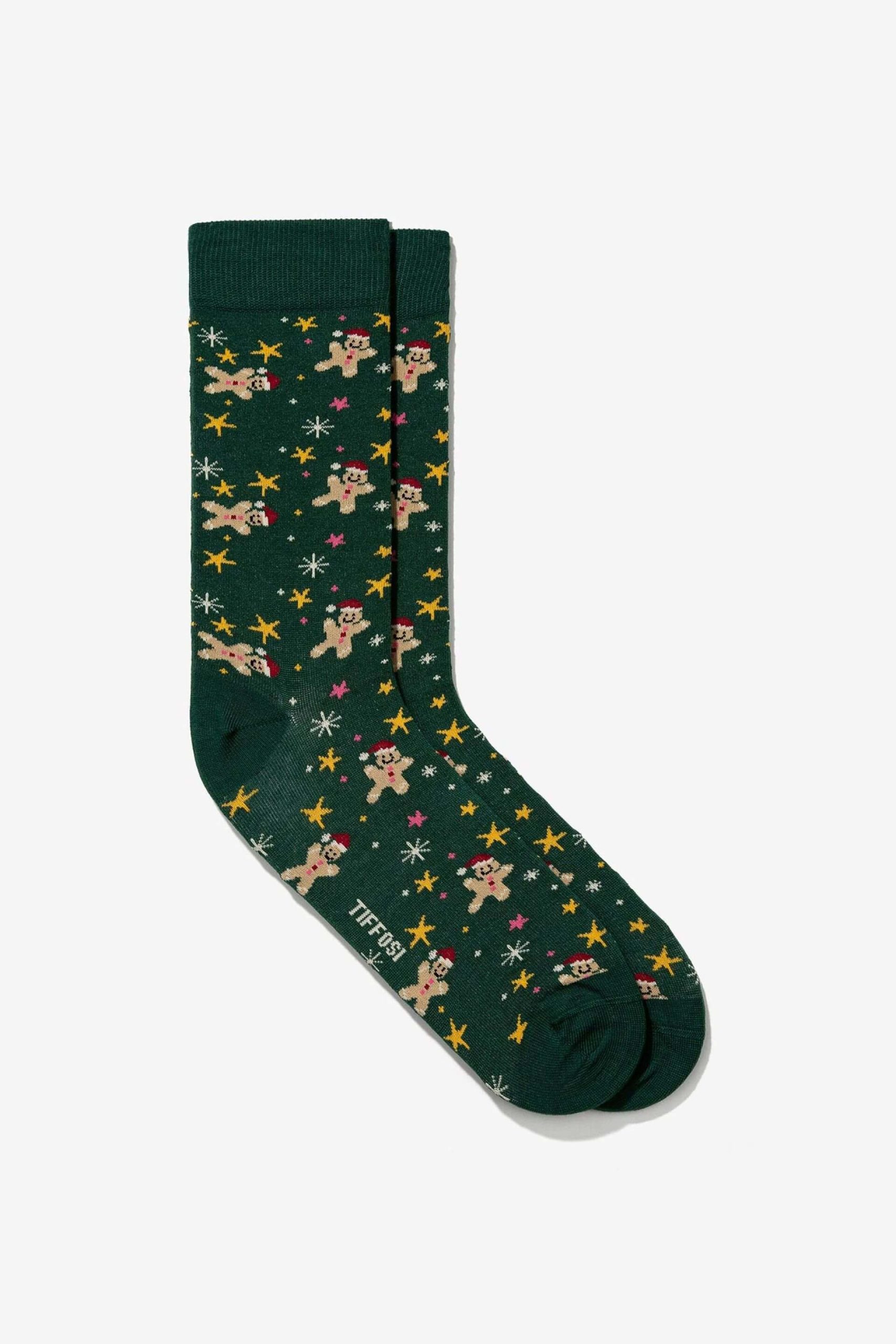 Pense em silhuetas dos anos 80, painéis pesados, denim super skinny e estampas de bandana. Pois bem essa era voltou aos dias de hoje. Assim são estas meias verdes c/ print Natal da Tiffosi. Apresenta elástico. O modelo está no tamanho 40-44.