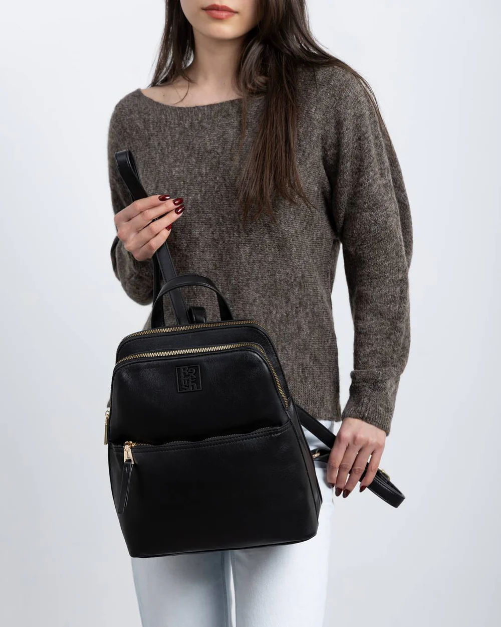 Conhecida por seu estilo urbano e design incomum, a Refresh incorpora detalhes inovadores. Combinados com silhuetas inspiradas em streetwear e uma estética jovial. Assim é esta mochila preta c/ fechos da Refresh. Apresenta alças de mão e vários bolsos interiores. Pode combinar com camisolas, mas dentro do mesmo estilo.