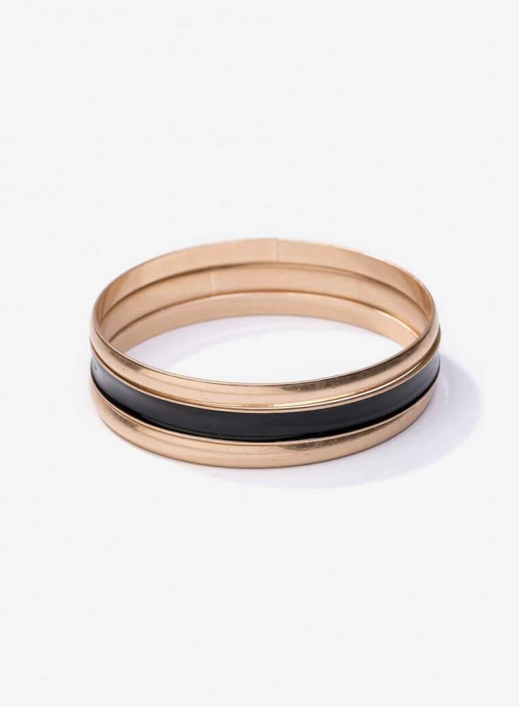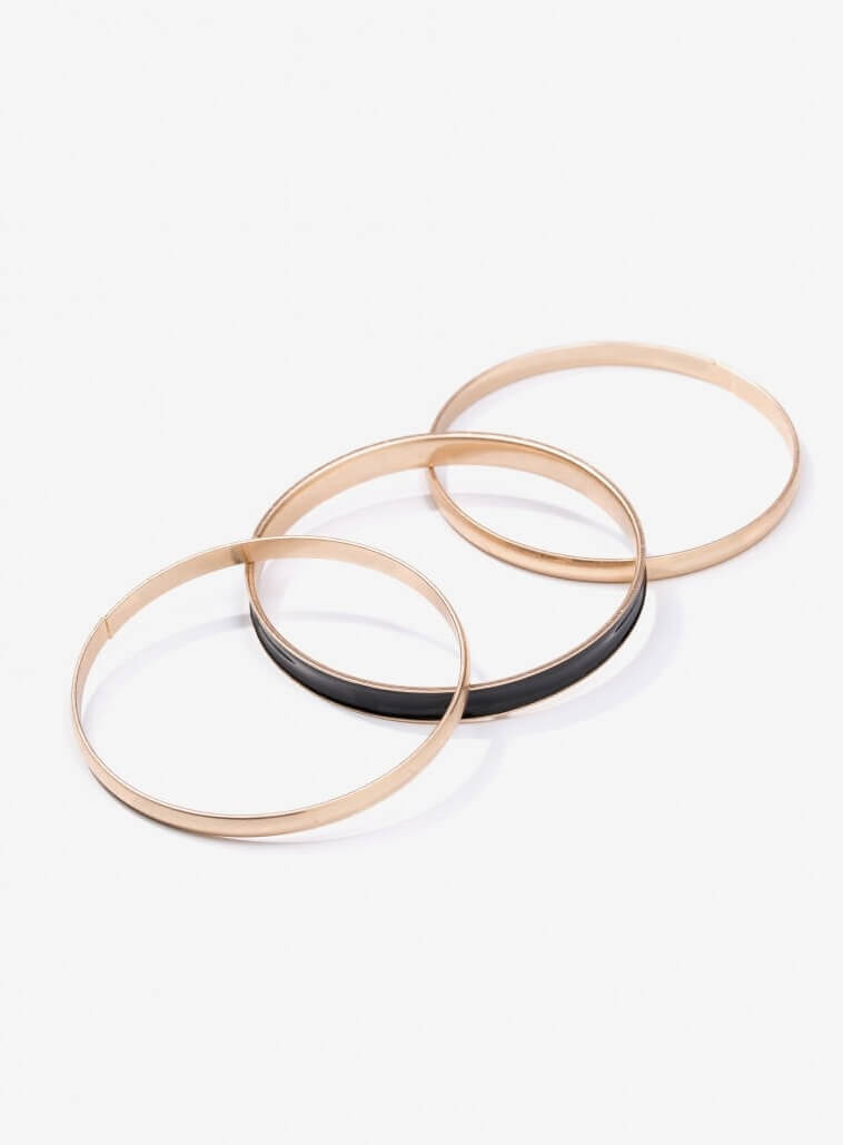 Vilanova é uma marca de acessórias de moda, desenvolvida para uma faixa etária jovem, inspirada na cidade de Barcelona, é dinâmica e urbana. Pertencente ao mesmo grupo da Tiffosi, nasceu pelas mãos do António Vila Nova em março de 2016. Criado em Portugal, este pack 3 pulseiras preta e douradas para mulher, da Vilanova. Feitas em metal, duas douradas e outra em preto com oorela dourada. São de tamanho único mas dão praticamente para todo o tipo de pulso. Peça versátil e elegante, pois pode ser usada no dia a dia num momento descontraído com jeans e camisa. Mas por outro lado pode por com um vestido preto para uma saída mais formal.