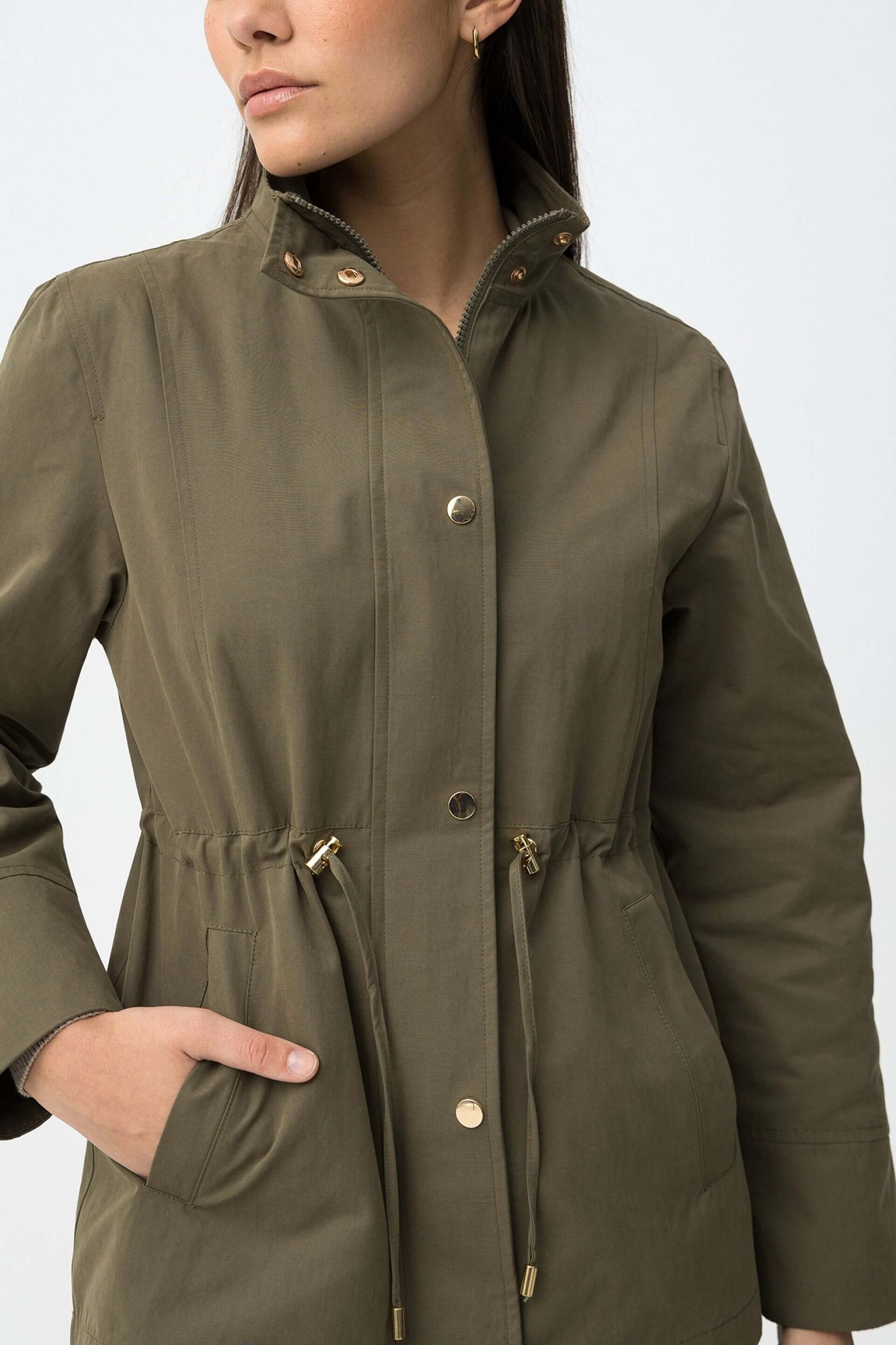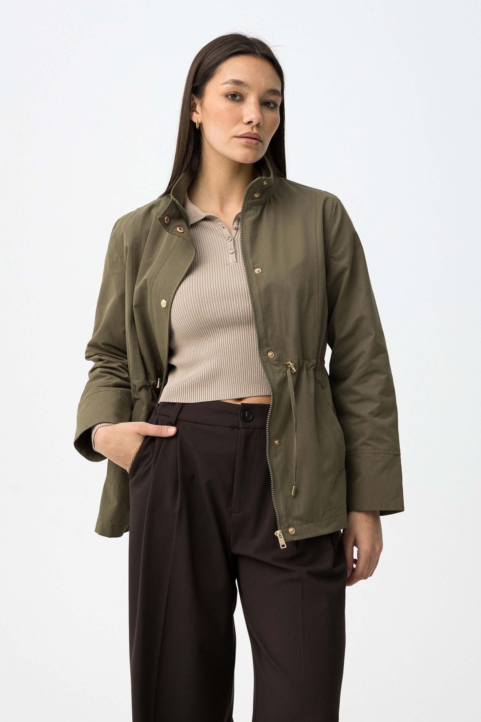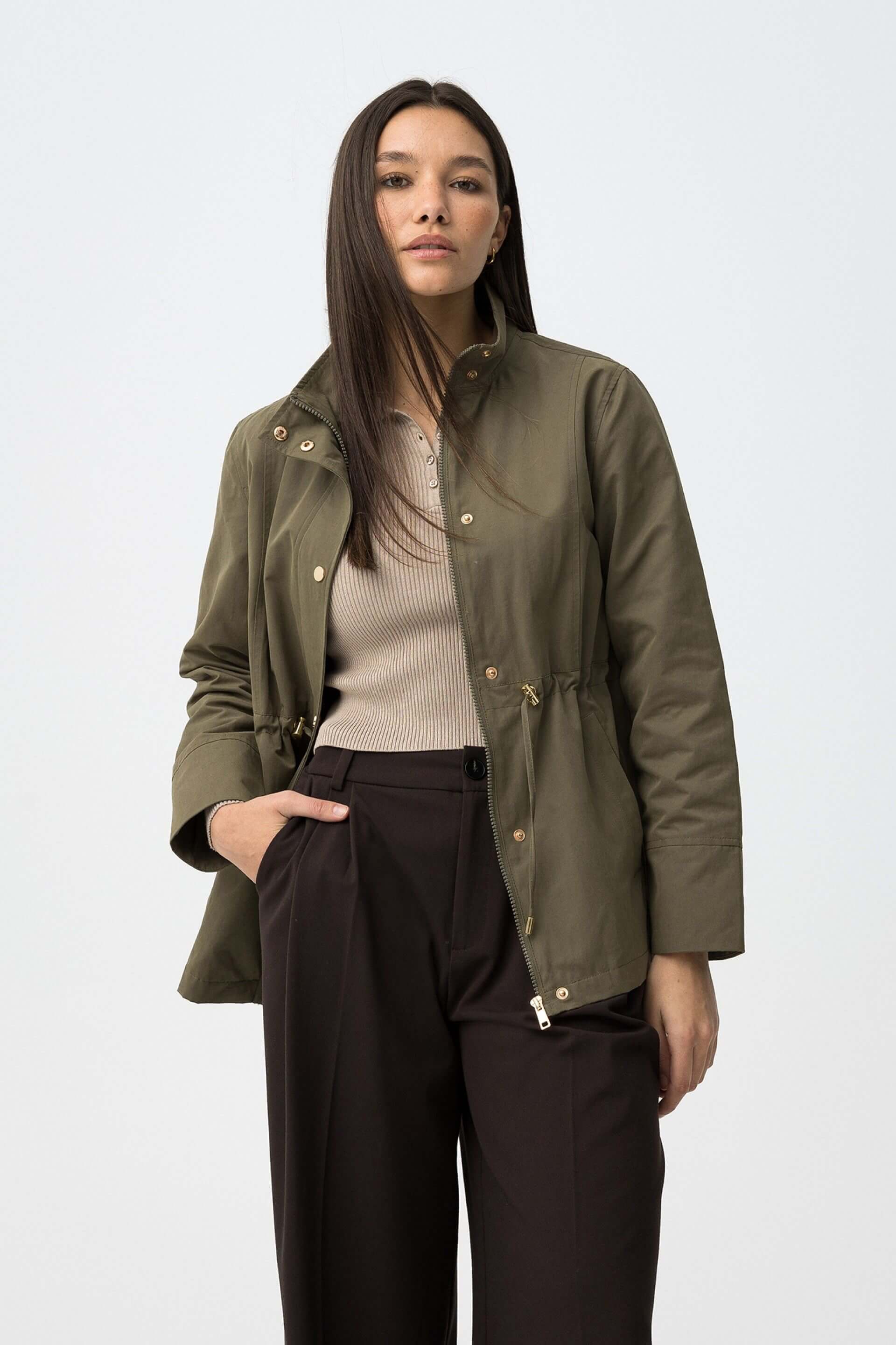 Conhecida por seu estilo urbano e design incomum, a Tiffosi incorpora detalhes inovadores. Combinados com silhuetas inspiradas em streetwear e uma estética jovial. A marca foi lançada em 1981 e oferece produtos de qualidade a preços acessíveis, que contam histórias e inspiram um estilo de vida. Assim é esta parka verde caqui da Tiffosi. Apresenta manga comprida, bolsos e fecho. Para parte de baixo combina na perfeição com calça, mas dentro do mesmo estilo. A modelo está a vestir o tamanho S.