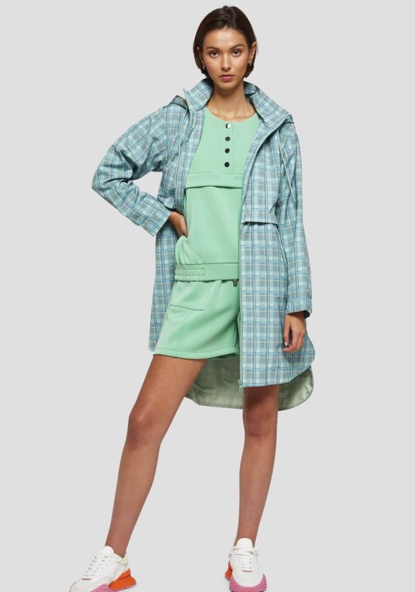 Projetado pela Md`m para mulheres decididas e atraentes, inspira-se nesta coleção em viagens ao redor do mundo. Pense em roupas brilhantes e bonitas, com prints únicos. Bordados inconfundíveis, que a levarão bela até ao final da jornada da trabalho. Assim é esta parka verde em xadrez da Md`m. Apresenta capuz, bolsos, fechos e manga comprida. Pode ser usado com jeans por baixo. A modelo está a vestir o tamanho 36.