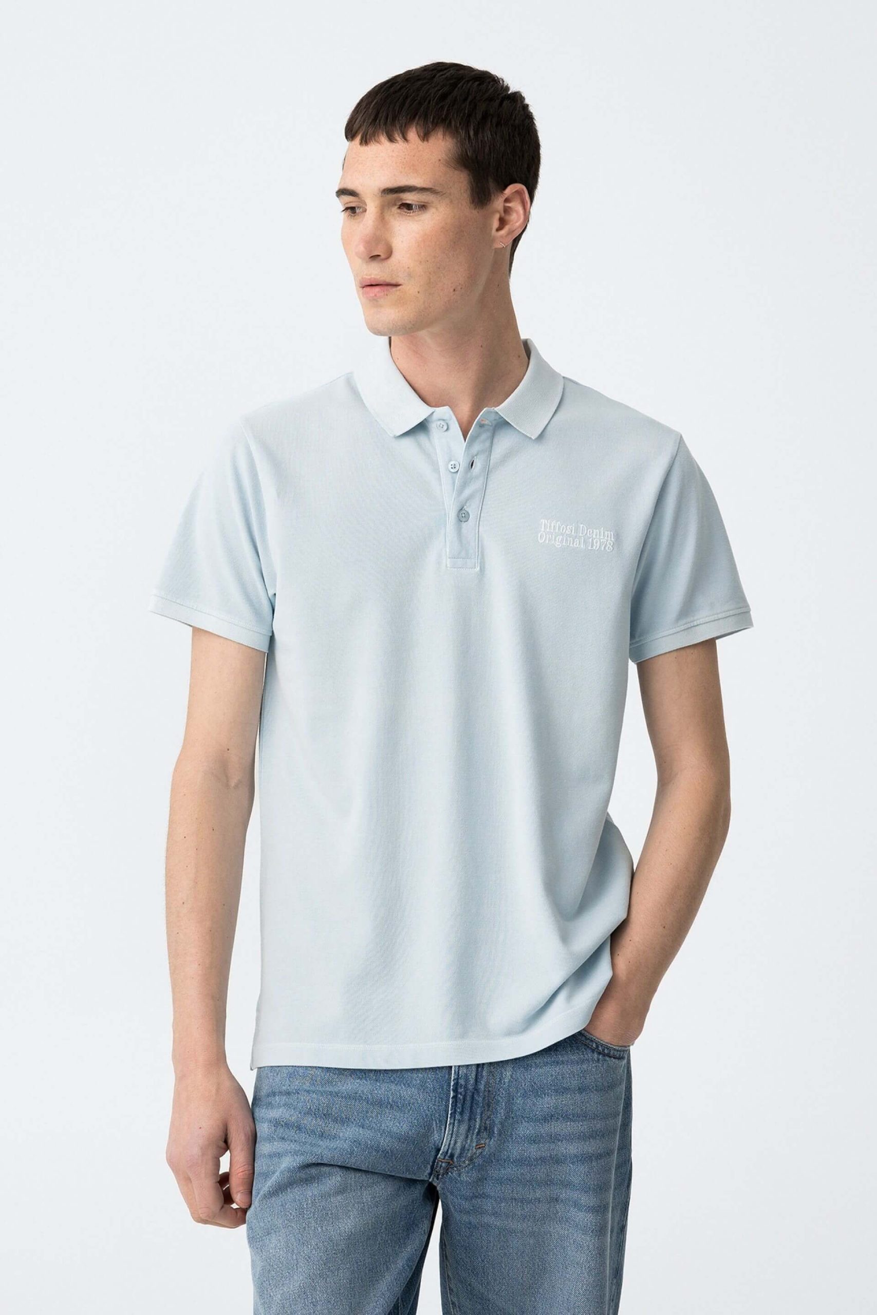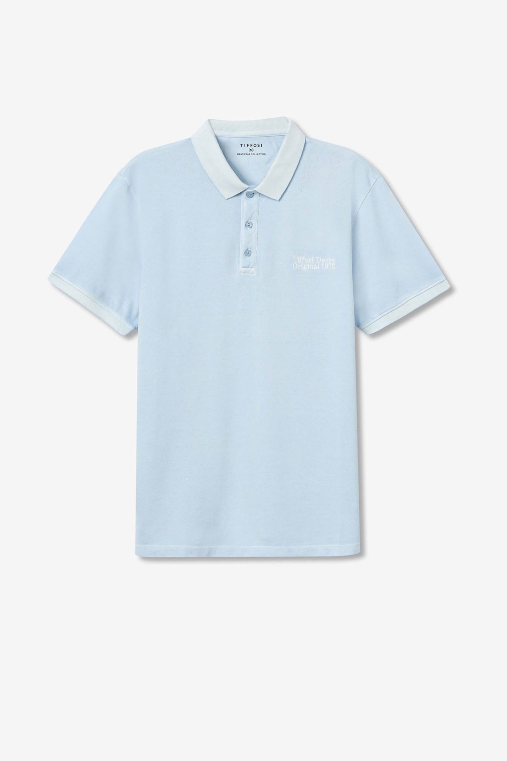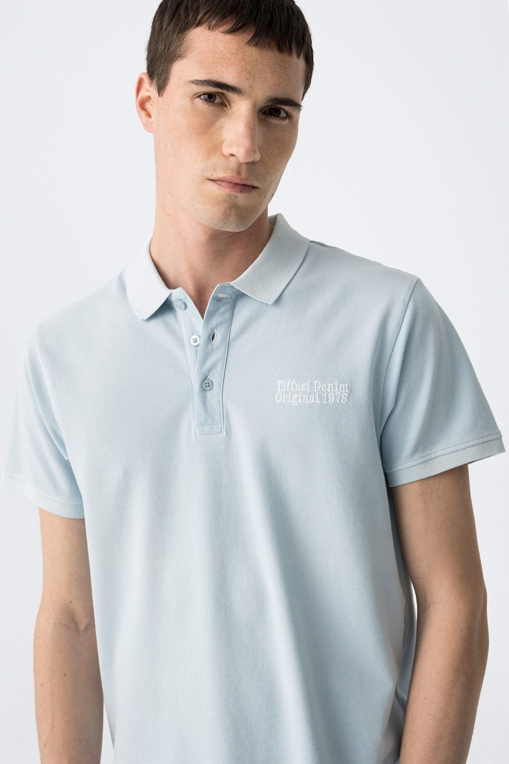Conhecida por seu estilo urbano e design incomum, a Tiffosi incorpora detalhes inovadores. Combinados com silhuetas inspiradas em streetwear e uma estética jovial. Assim é este polo azul claro da Tiffosi. Tem manga curta, gola e carcela com 3 botões. Para parte de baixo combina na perfeição com jeans, mas dentro do mesmo estilo. O modelo está a vestir o M.