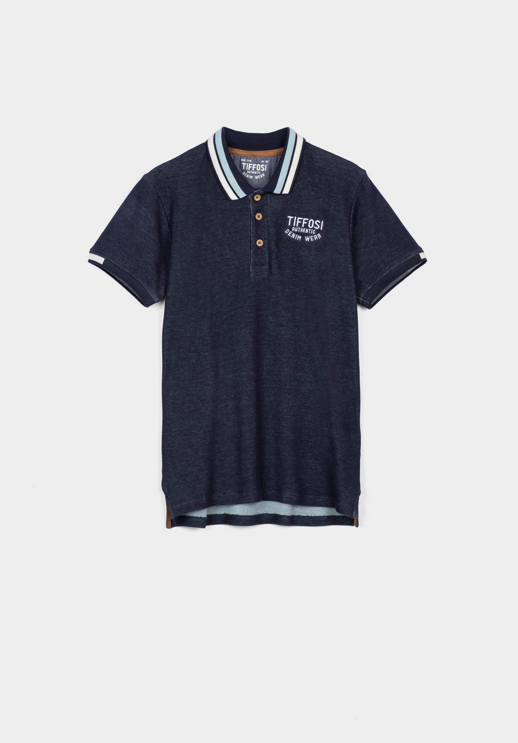 Pense em silhuetas dos anos 80, painéis pesados, denim super skinny e estampas de bandana. Pois bem essa era voltou aos dias de hoje. Conhecida por seu estilo urbano e design incomum, a Tiffosi incorpora detalhes nativos portugueses. Assim é este polo de jacquard azul da Tiffosi. Com colarinho de aba e manga curta. Texto bordado frontal. Fecho de botões à frente. Parte inferior com aberturas laterais. Pormenor de riscas na gola. Para parte de baixo combina na perfeição com jeans mas a dar com o tom. A imagem está no tamanho 9-10 anos /140 cm.