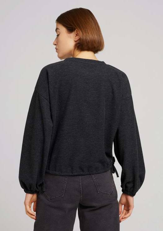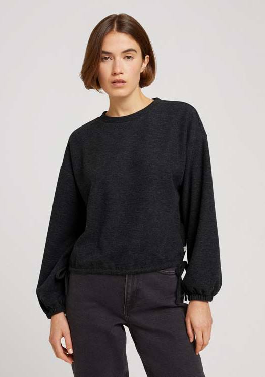 Conhecida por seu estilo urbano e design incomum, a Tom Tailor incorpora detalhes inovadores. Combinados com silhuetas inspiradas em streetwear e uma estética jovial. Assim é este pulôver com laços na cintura da Tom Tailor. Apresenta um decote redondo e manga comprida. Para parte de baixo combina na perfeição com calça, mas dentro do mesmo estilo. A modelo está a vestir o tamanho S.