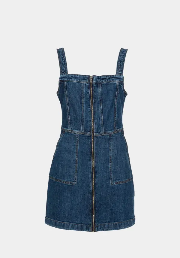 Pense em silhuetas dos anos 80, painéis pesados, denim super skinny e estampas de bandana. Pois bem essa era voltou aos dias de hoje. Assim é esta saia jardineira de ganga da Tiffosi. Apresenta alças, fecho e bolsos. Para parte de cima combina na perfeição com casaco de ganga mas a dar com o tom. A manequim está a vestir o tamanho S.