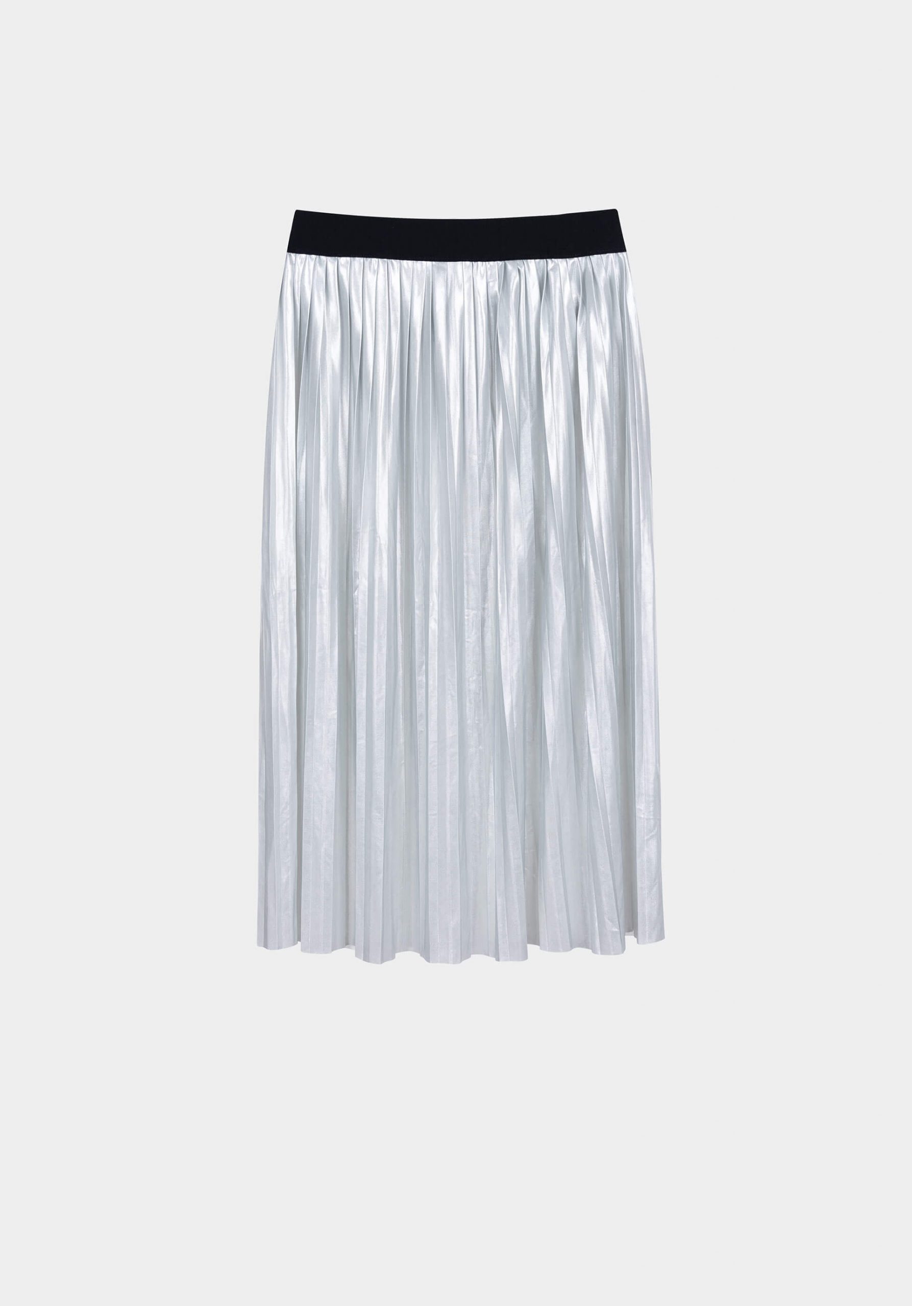 Conhecida por seu estilo urbano e design incomum, a Tiffosi incorpora detalhes inovadores. Combinados com silhuetas inspiradas em streetwear e uma estética jovial. Assim é esta saia plissada cinza metal da Tiffosi. Tem elástico preto no cós e com um comprimento midi. Para parte de cima combina na perfeição com camisa, mas dentro do mesmo estilo. A modelo está a vestir o S.
