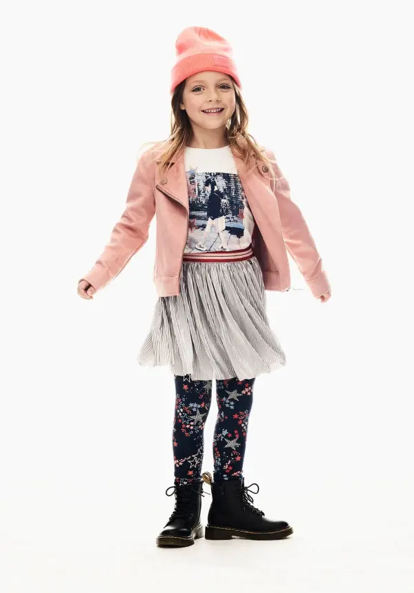 Combinando a história dos fundadores da Garcia Jeans, Maurizio e Isabella Gracia, as suas coleções produzem uma seleção forte de roupas de dia a dia que inspirou o amor do fundador de fazer com que as meninas parecessem mais bonitas no seu dia-a-dia. Assim é esta saia plissada metal da Garcia Jeans. Tem elástico colorido na cintura. Esta Saia plissada metal combina para parte de baixo com leggings mas dentro do mesmo estilo. A modelo está a vestir o 5-6 anos / 116 cm.