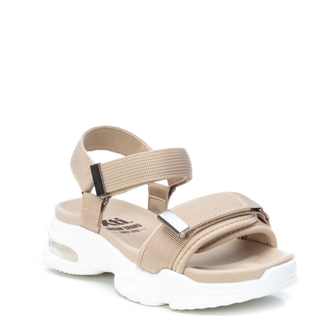 Conhecida por seu estilo urbano e design incomum, a Xti incorpora detalhes inovadores. Combinados com silhuetas inspiradas em streetwear e uma estética jovial. Assim é esta sandália bege c/ tiras da Xti. Apresenta sola de borracha e velcro. Para parte de cima combina na perfeição com camisolas, mas dentro do mesmo estilo. O modelo está no tamanho 33.