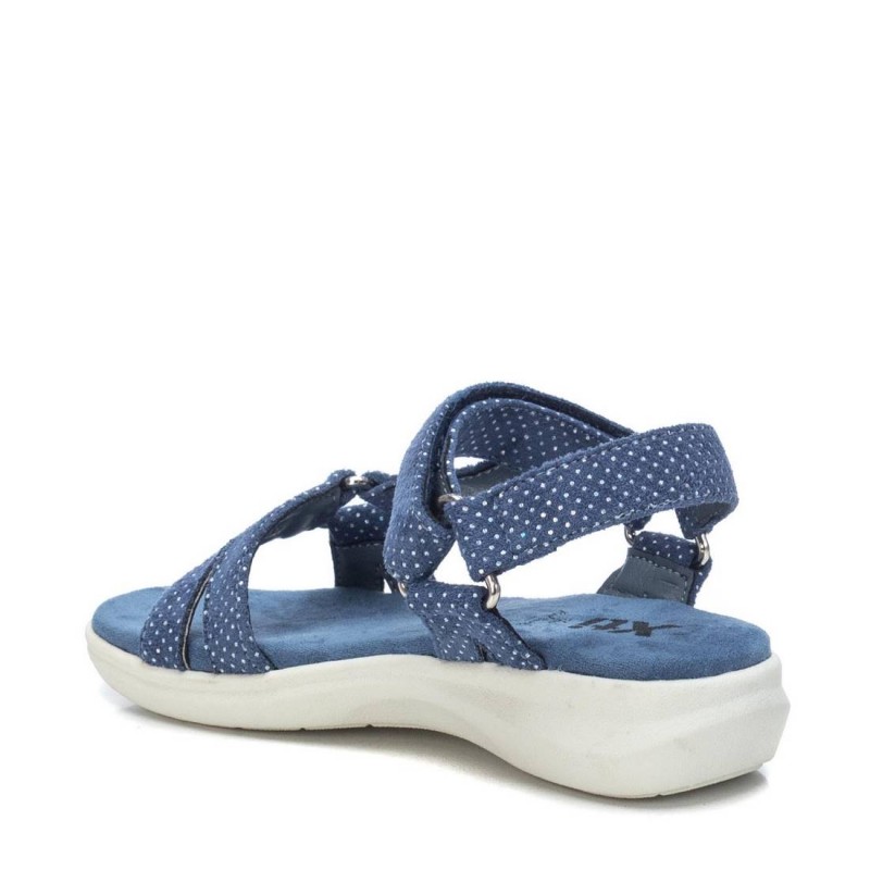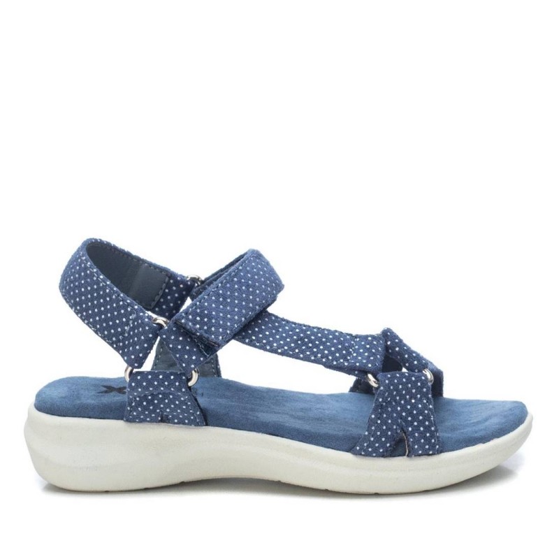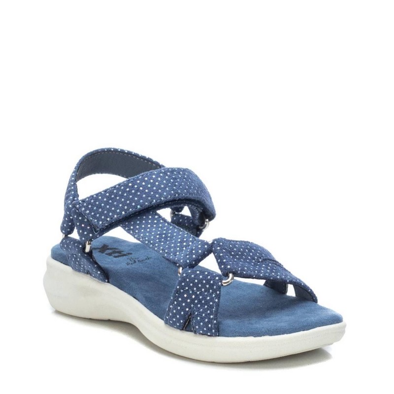 Conhecida por seu estilo urbano e design incomum, a Xti incorpora detalhes inovadores. Combinados com silhuetas inspiradas em streetwear e uma estética jovial. Assim são estas sandálias azul jeans c/ pintinhas da Xti. Apresenta uma sola de borracha de 2 cm e aperto de velcro. Para parte de cima combina na perfeição com camisolas, mas dentro do mesmo estilo. O modelo está no tamanho 33.