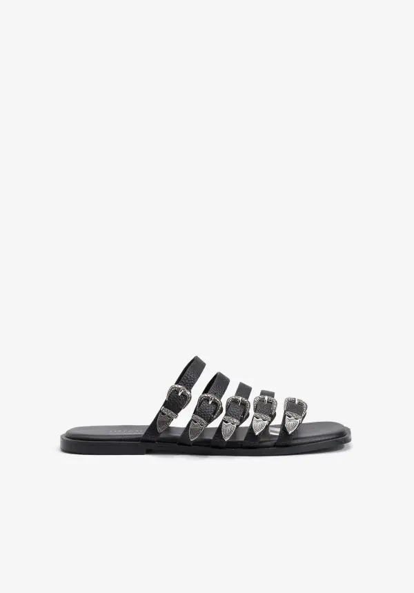 Conhecida por seu estilo urbano e design incomum, a Tiffosi incorpora detalhes inovadores. Combinados com silhuetas inspiradas em streetwear e uma estética jovial. Assim são estas sandálias pretas c/ fivelas da Tiffosi em poliuretano. Tem tiras e rasto baixo. Combina na perfeição com vestidos, mas dentro do mesmo estilo. Este modelo está no tamanho 36.