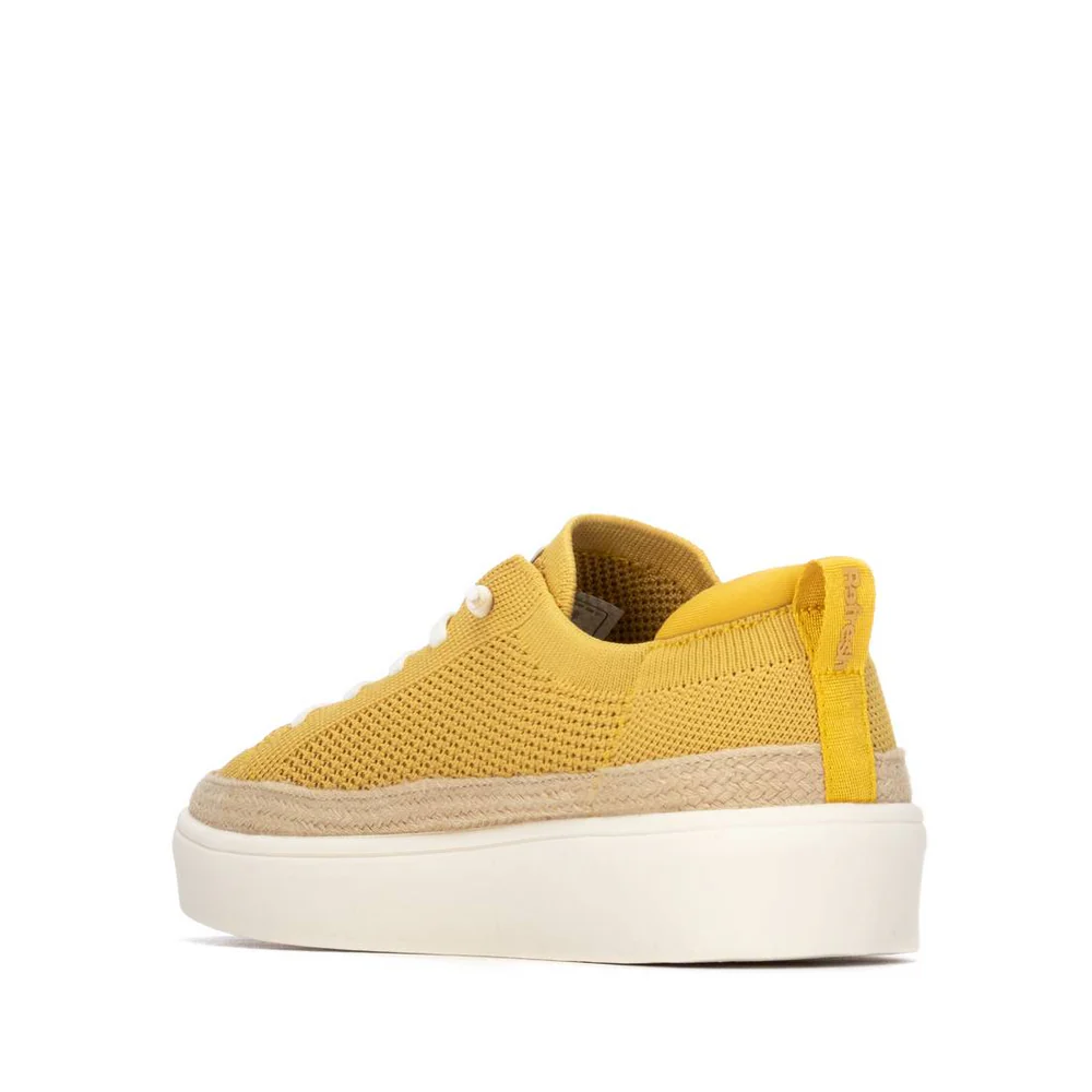Conhecida por seu estilo urbano e design incomum, a Refresh incorpora detalhes inovadores. Combinados com silhuetas inspiradas em streetwear e uma estética jovial. Assim são estas sapatilhas amarelas da Refresh. Apresenta uma sola de borracha e atacadores. Para parte de cima combina na perfeição com camisolas, mas dentro do mesmo estilo. O modelo está no tamanho 37.