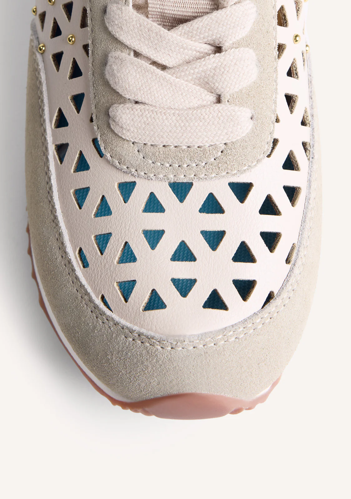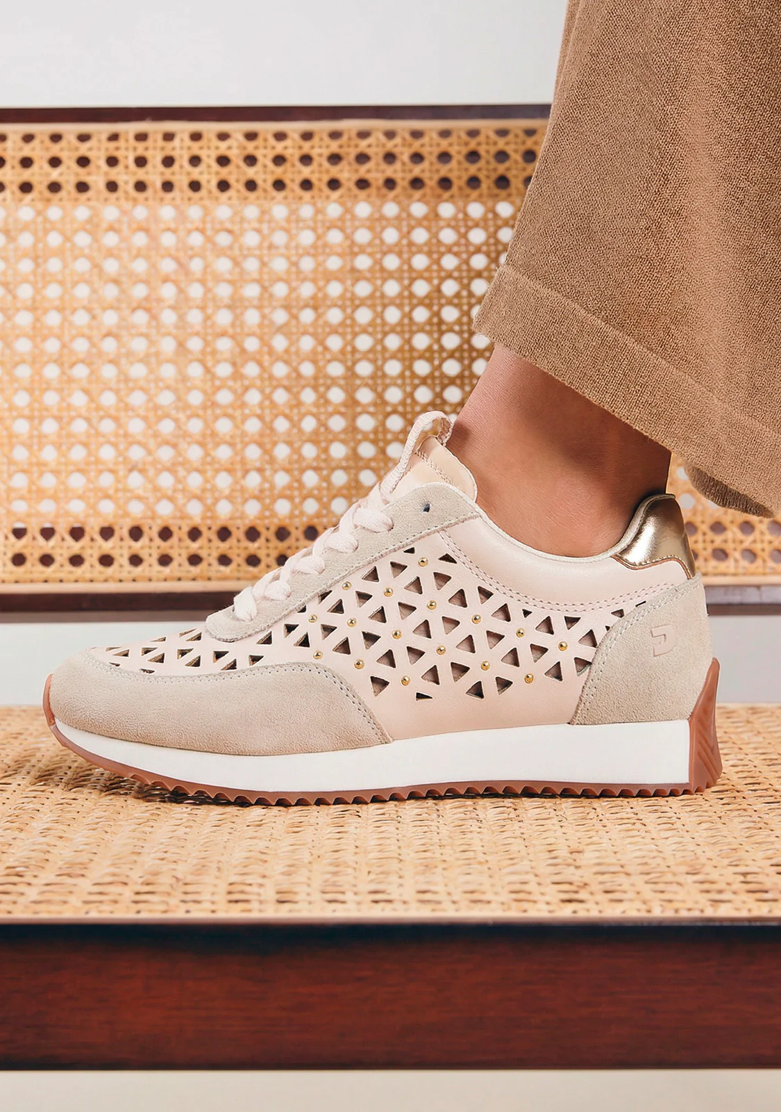Conhecida por seu estilo urbano e design incomum, a Gioseppo incorpora detalhes inovadores. Combinados com inspirações em streetwear e uma estética jovial. Assim são estas sapatilhas bege com aberturas da Gioseppo. Tem atacadores.Para parte de cima combina na perfeição com camisolas, mas dentro do mesmo estilo. O modelo está no tamanho 37.