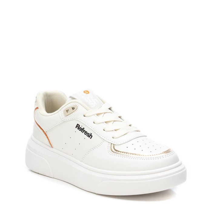 Conhecida por seu estilo urbano e design incomum, a Refresh incorpora detalhes inovadores. Combinados com silhuetas inspiradas em streetwear e uma estética jovial. Assim são estas sapatilhas brancas c/ tigresa da Refresh. Apresenta uma sola de borracha e atacadores. Para parte de cima combina na perfeição com camisolas, mas dentro do mesmo estilo. O modelo está no tamanho 37.