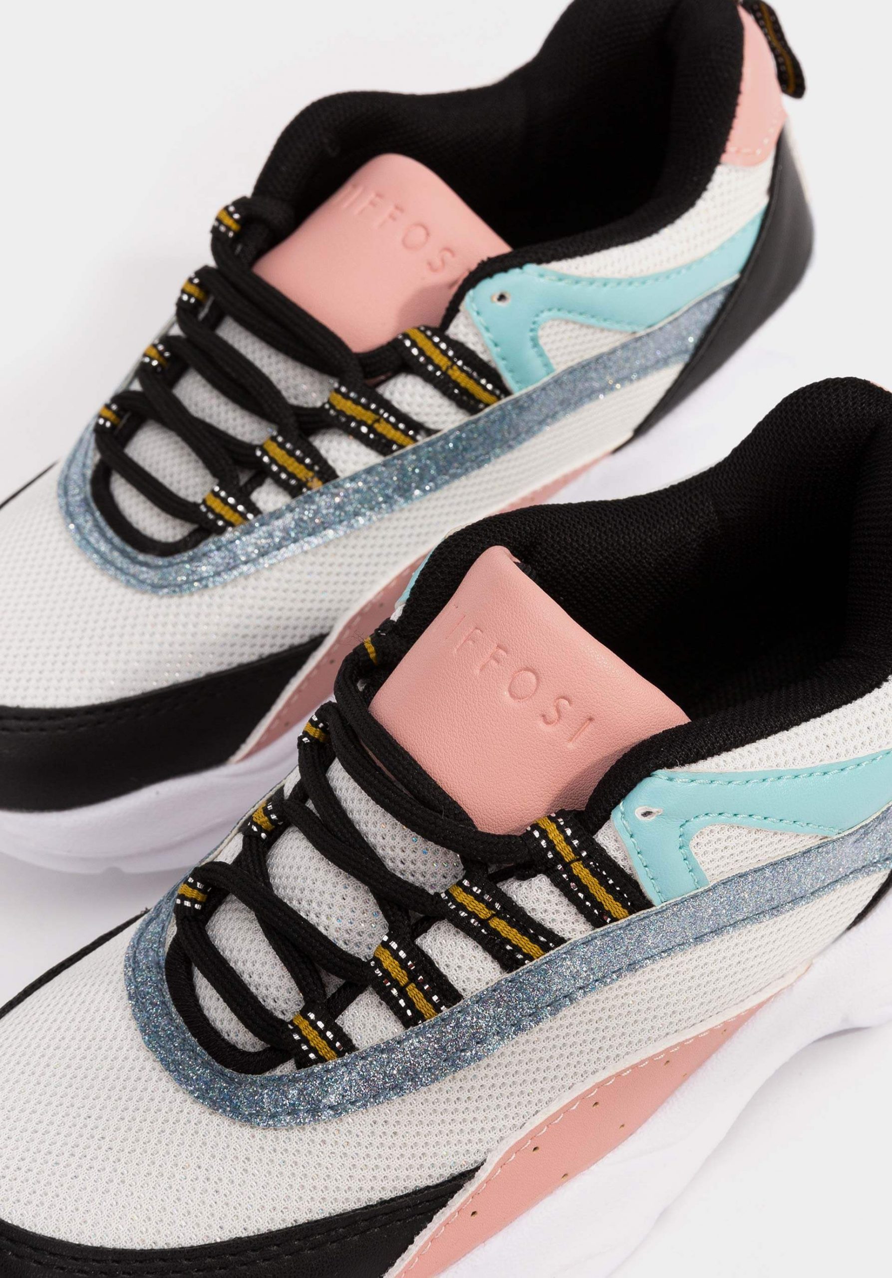 Conhecida por seu estilo urbano e design incomum, a Tiffosi incorpora detalhes inovadores. Combinados com silhuetas inspiradas em streetwear e uma estética jovial. Assim são estas sapatilhas c/ brilho e rasto branco da Tiffosi em poliuretano. Combina na perfeição com jeans, mas dentro do mesmo estilo. Este modelo está no tamanho 32.