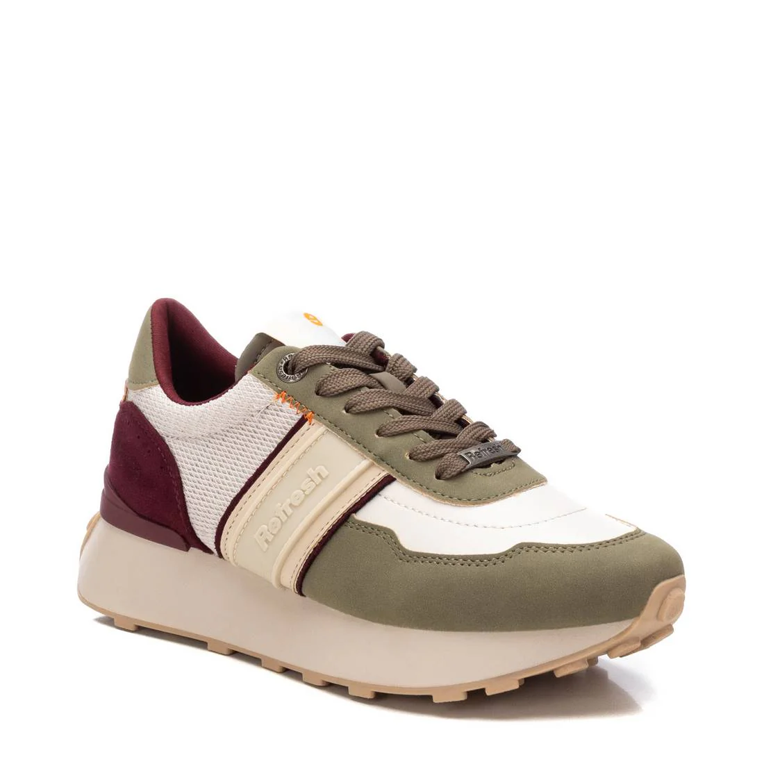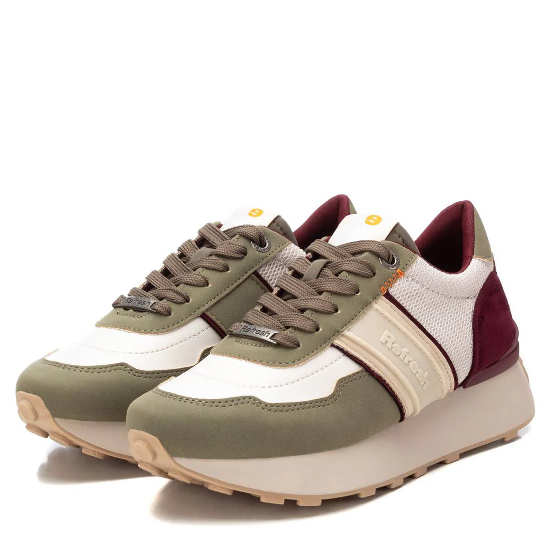 Conhecida por seu estilo urbano e design incomum, a Refresh incorpora detalhes inovadores. Combinados com silhuetas inspiradas em streetwear e uma estética jovial. Assim são estas sapatilhas caqui da Refresh. Apresenta uma sola de borracha e atacadores. Para parte de cima combina na perfeição com camisolas, mas dentro do mesmo estilo. O modelo está no tamanho 37.