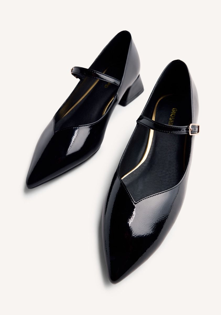 Conhecida por seu estilo urbano e design incomum, a Gioseppo incorpora detalhes inovadores. Combinados com inspirações em streetwear e uma estética jovial. Assim são estes sapatos pretos de verniz da Gioseppo. Tem tacão.Para parte de cima combina na perfeição com camisolas, mas dentro do mesmo estilo. O modelo está no tamanho 37.