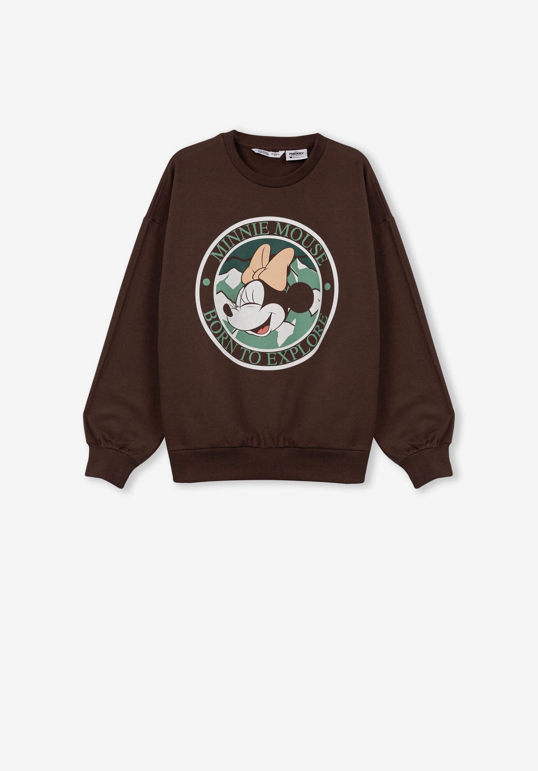 Pense em silhuetas dos anos 80, painéis pesados, denim super skinny e estampas de bandana. Pois bem essa era voltou aos dias de hoje. Assim é este sweat castanho c/ minnie da Tiffosi. Tem decote redondo e manga comprida. Para parte de baixo combina na perfeição com jeans mas a dar com o tom. A imagem está no tamanho 9-10 anos /140 cm.