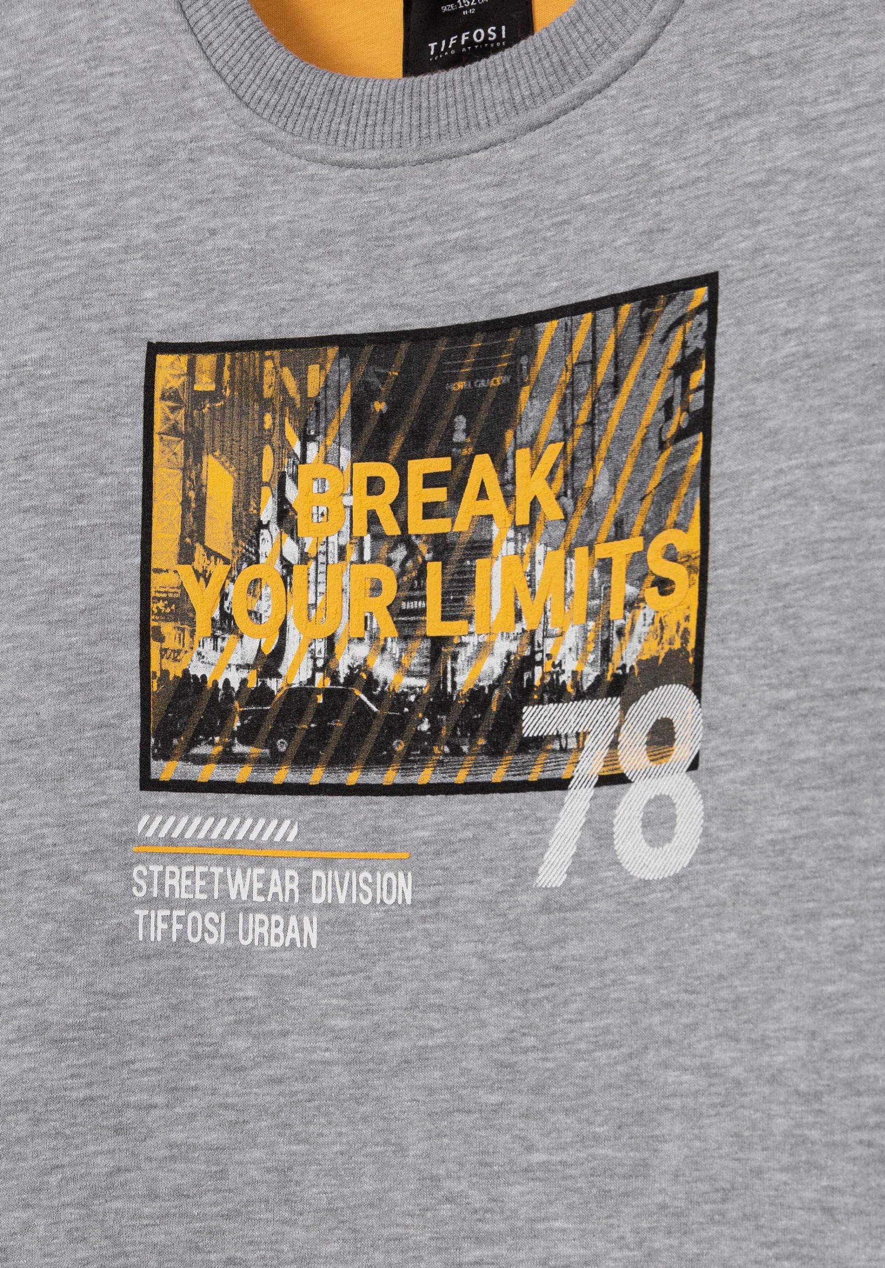 Pense em silhuetas dos anos 80, painéis pesados, denim super skinny e estampas de bandana. Pois bem essa era voltou aos dias de hoje. Conhecida por seu estilo urbano e design incomum, a Tiffosi incorpora detalhes nativos portugueses. Assim é esta sweat cinza c/ estampa da Tiffosi. Tem decote redondo e manga comprida. Para parte de baixo combina na perfeição com jeans mas a dar com o tom. A imagem está no tamanho 9-10 anos /140 cm.