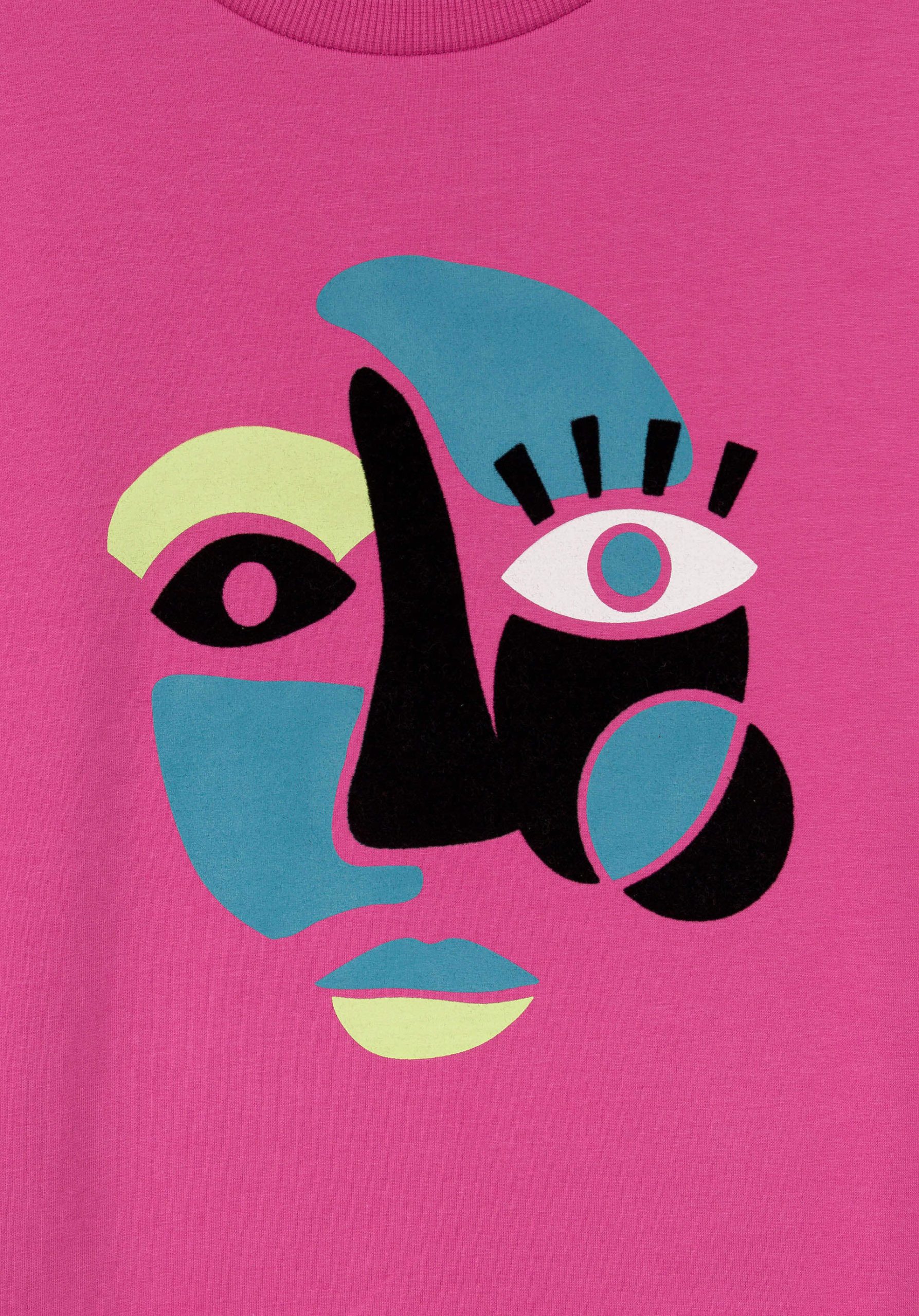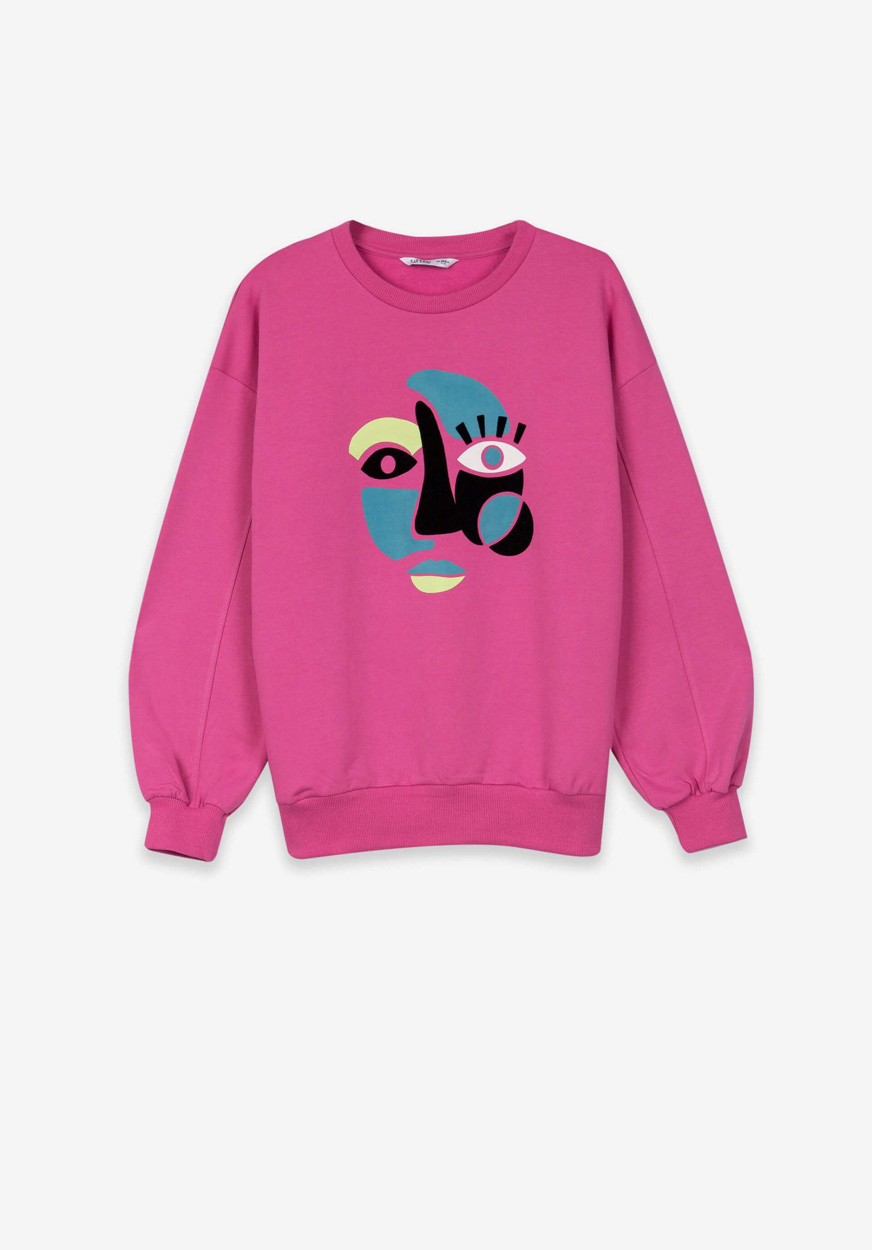 Pense em silhuetas dos anos 80, painéis pesados, denim super skinny e estampas de bandana. Pois bem essa era voltou aos dias de hoje. Conhecida por seu estilo urbano e design incomum, a Tiffosi incorpora detalhes nativos portugueses. Assim é esta sweat rosa c/ cara da Tiffosi. Tem decote redondo e manga comprida. Para parte de baixo combina na perfeição com jeans mas a dar com o tom. A imagem está no tamanho 9-10 anos /140 cm.
