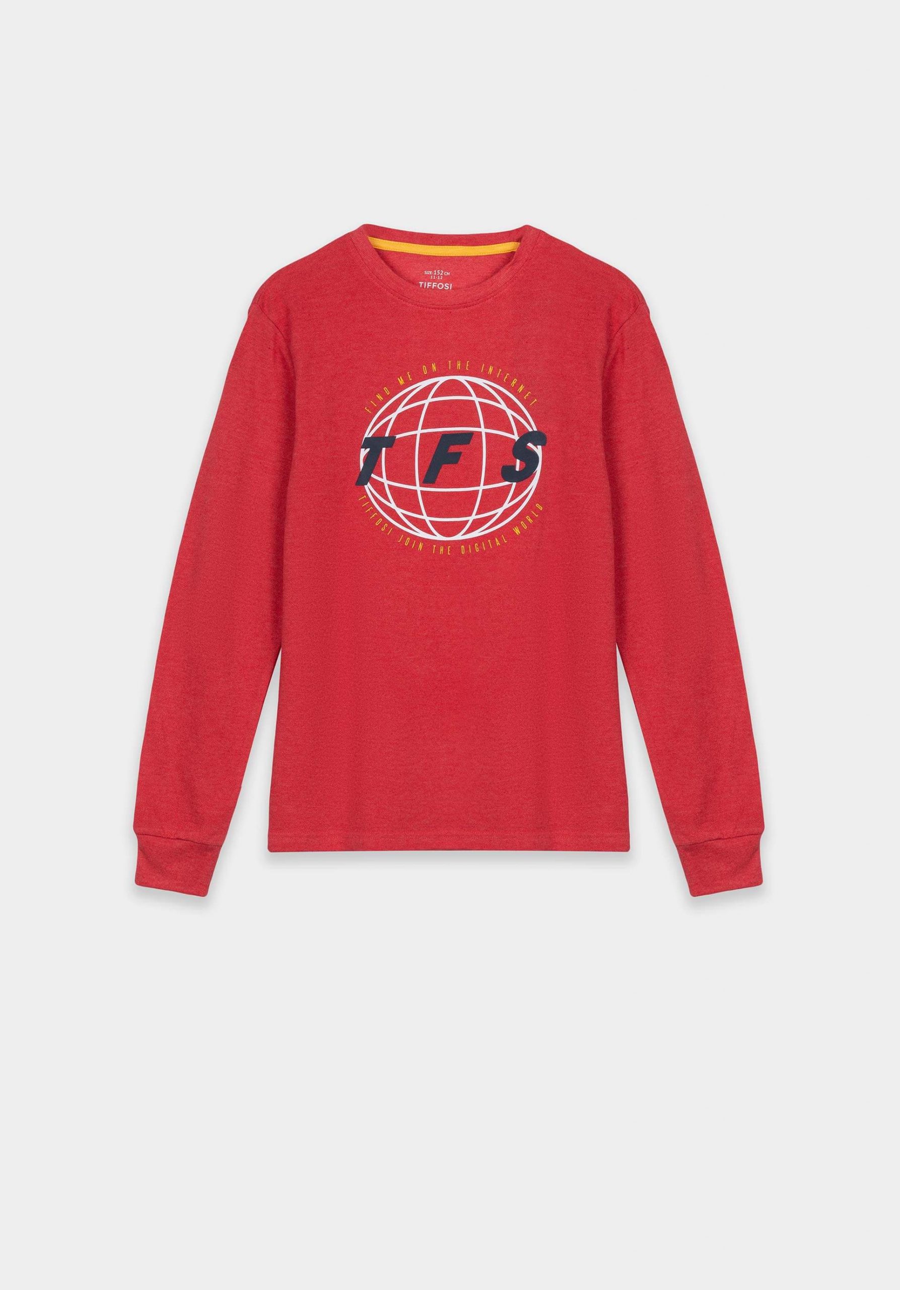 Conhecida por seu estilo urbano e design incomum, a Tiffosi incorpora detalhes inovadores. Combinados com silhuetas inspiradas em streetwear e uma estética jovial. Assim é esta sweat vermelha c/ estampa na frente da Tiffosi. Tam manga comprida e decote redondo. Para parte de baixo combina na perfeição com jeans, mas dentro do mesmo estilo. A imagem está no tamanho 9-10 anos / 140 cm.