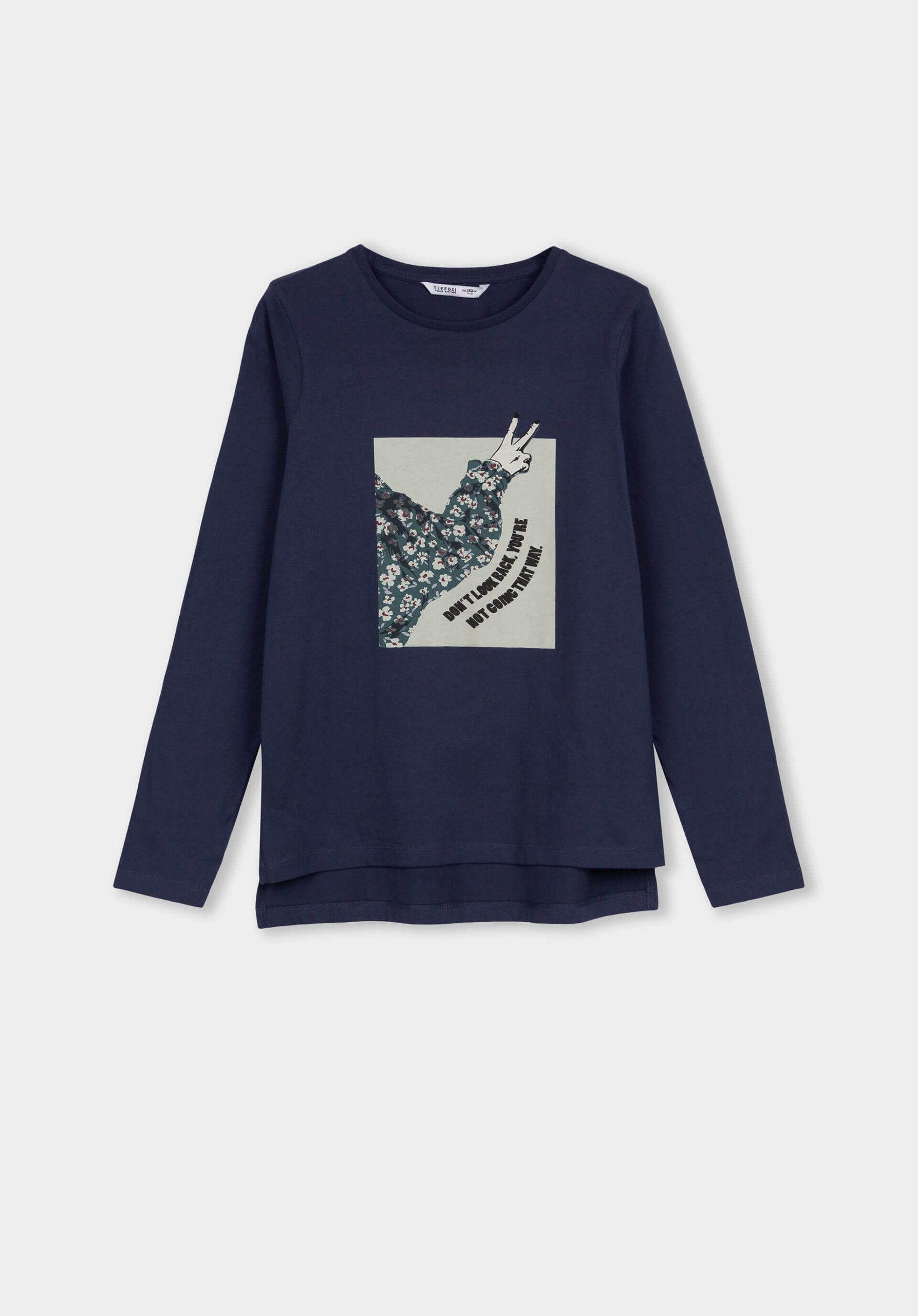 Pense em silhuetas dos anos 80, painéis pesados, denim super skinny e estampas de bandana. Pois bem essa era voltou aos dias de hoje. Conhecida por seu estilo urbano e design incomum, a Tiffosi incorpora detalhes nativos portugueses. Assim é esta t-shirt azul c/ estampa da Tiffosi. Tem decote redondo e manga comprida. Para parte de baixo combina na perfeição com jeans mas a dar com o tom. A imagem está no tamanho 9-10 anos /140 cm.