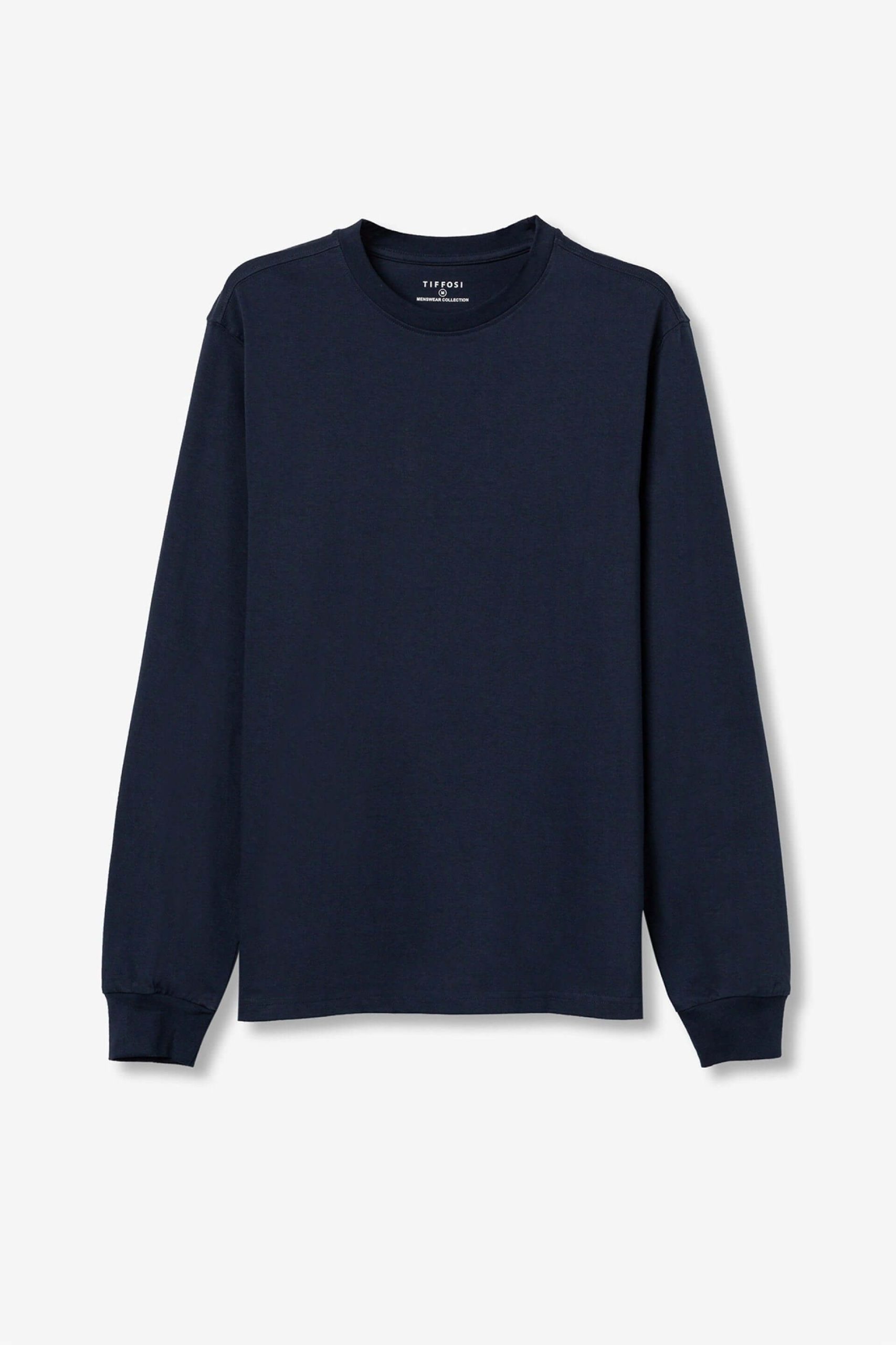 Conhecida por seu estilo urbano e design incomum, a Tiffosi incorpora detalhes inovadores. Combinados com silhuetas inspiradas em streetwear e uma estética jovial. Assim é esta t-shirt azul c/ manga comprida da Tiffosi. Tem manga comprida e decote redondo. Para parte de baixo combina na perfeição com jeans, mas dentro do mesmo estilo. O modelo está a vestir o M.